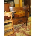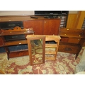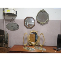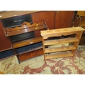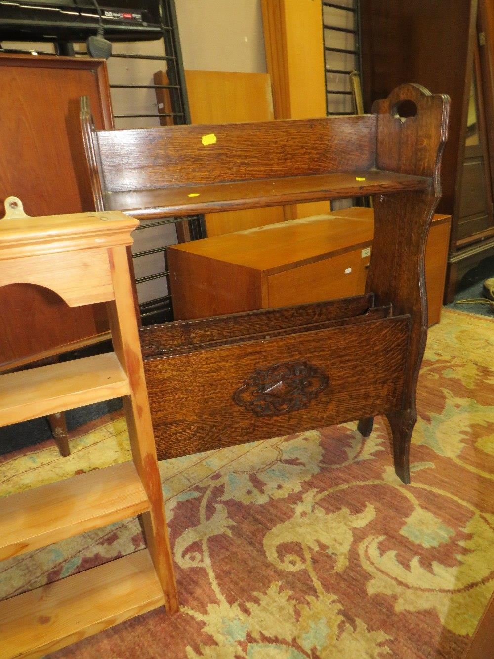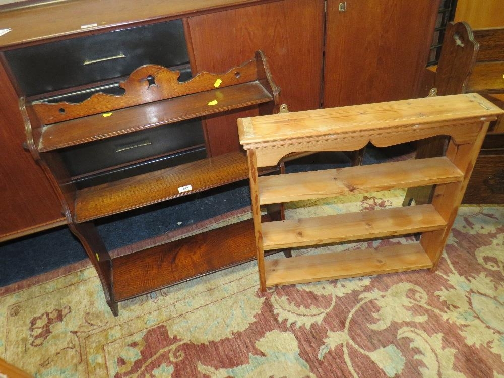AN EDWARDIAN HANGING SHELF, A 1930;S OAK PAPER RACK, A PINE SHELF AND A MIRROR (4)