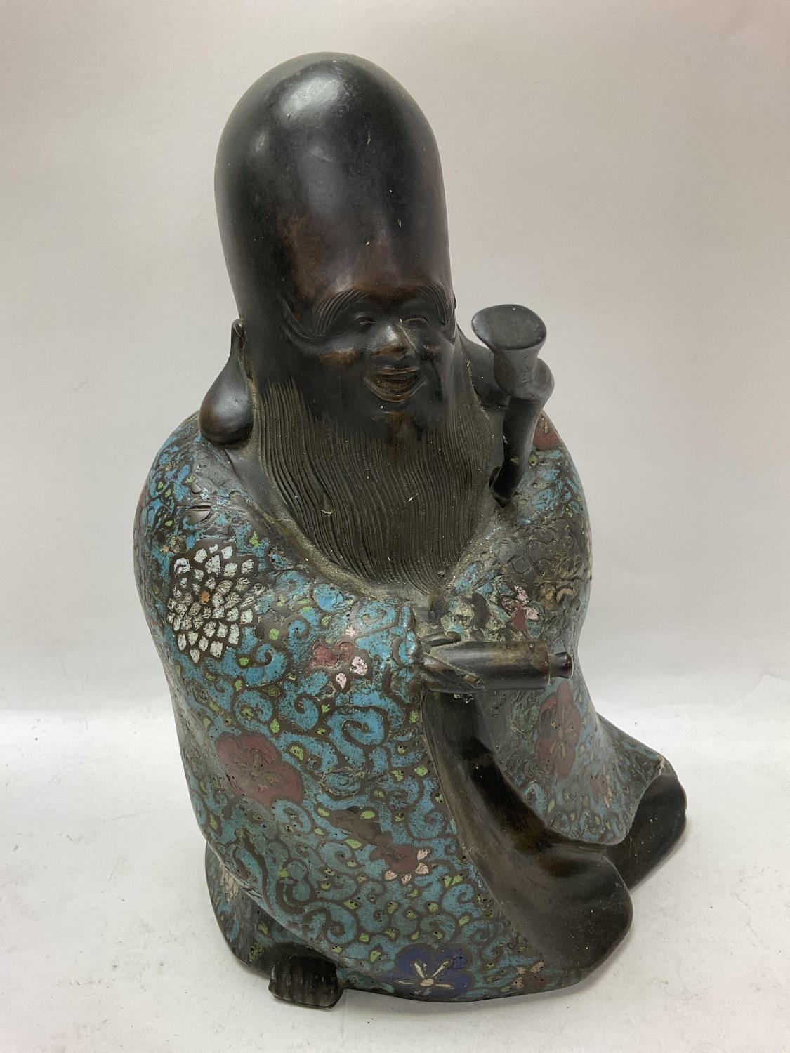 A Chinese bronze and cloisonné figure of Shou Lao, 24cm