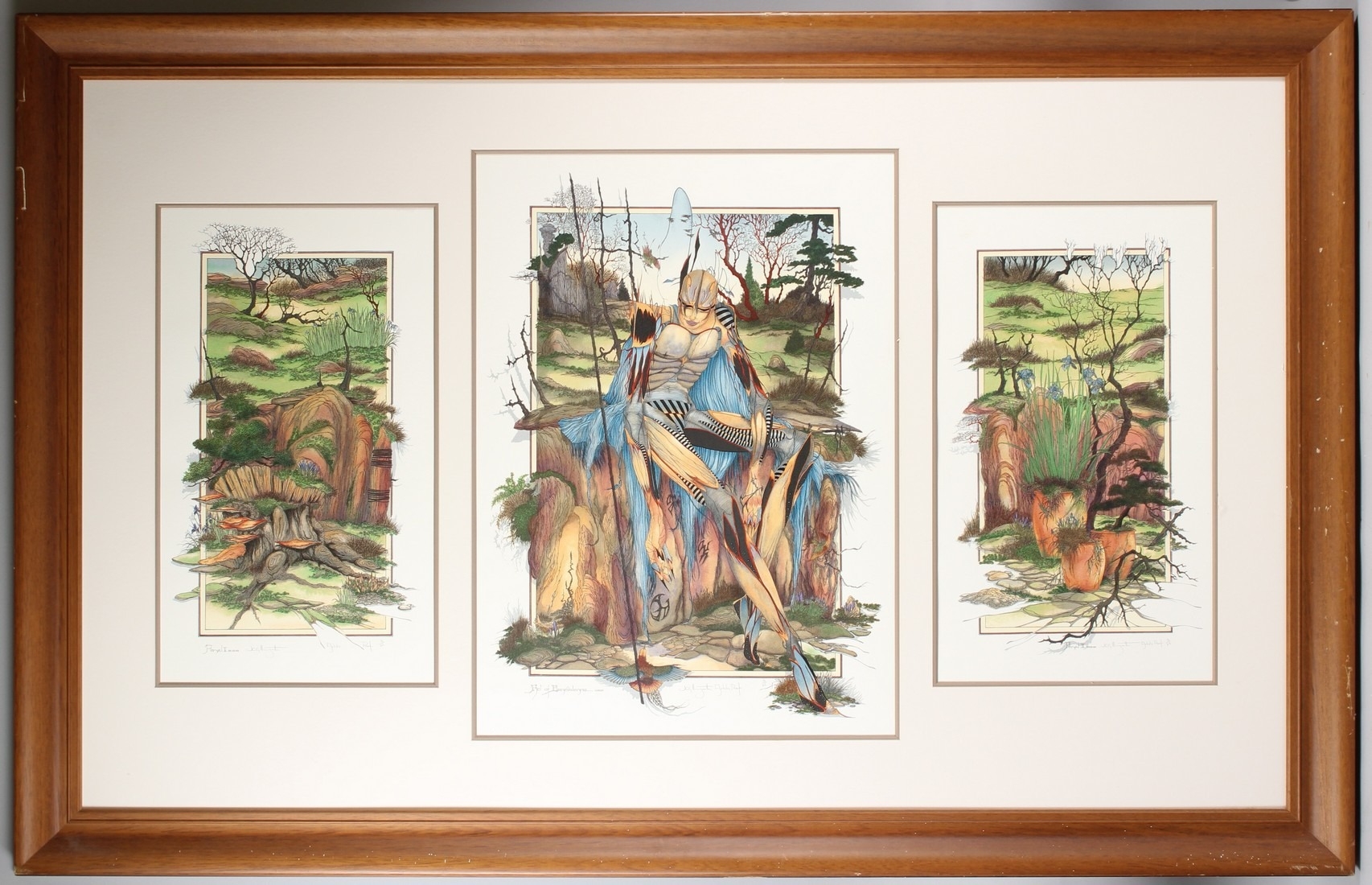 GRAHAM ILLINGWORTH (1953) 'Act of Benevolence' triptych silkscreen print 12/25 central panel 70 x 50cm flanked by panel I and panel II, each 57 x 33cm signed and inscribed, artists proof