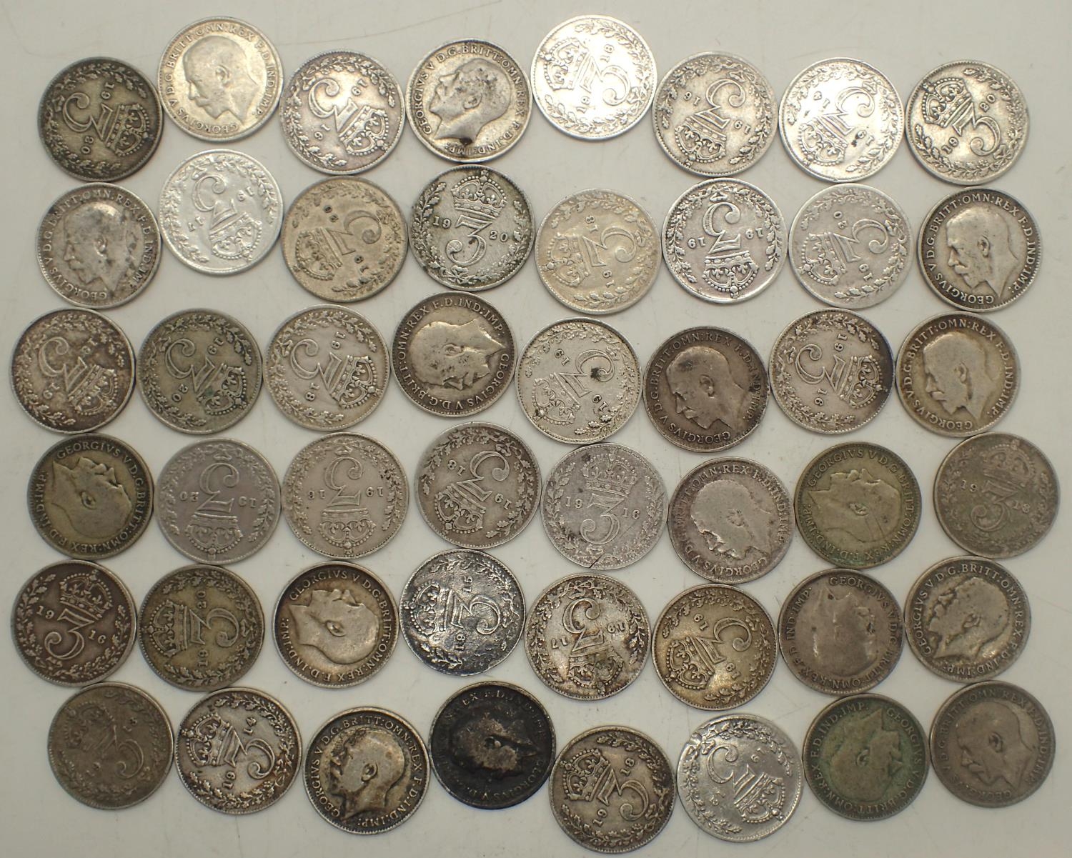 Fifty silver sixpences of George V, dates 1914-1920, mixed grades. P&P Group 1 (£14+VAT for the first lot and £1+VAT for subsequent lots)