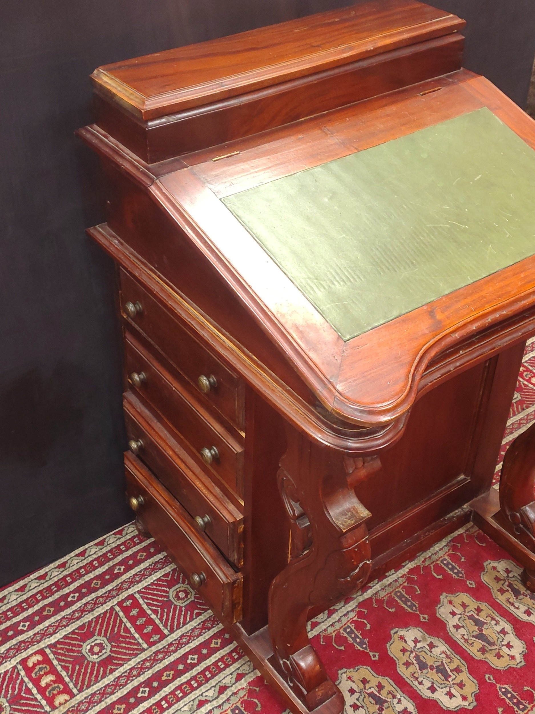 A reproduction stylish DAVENPORT desk in good useable condition. Stands 84cm tall, 55cm wide and 55cm deep.