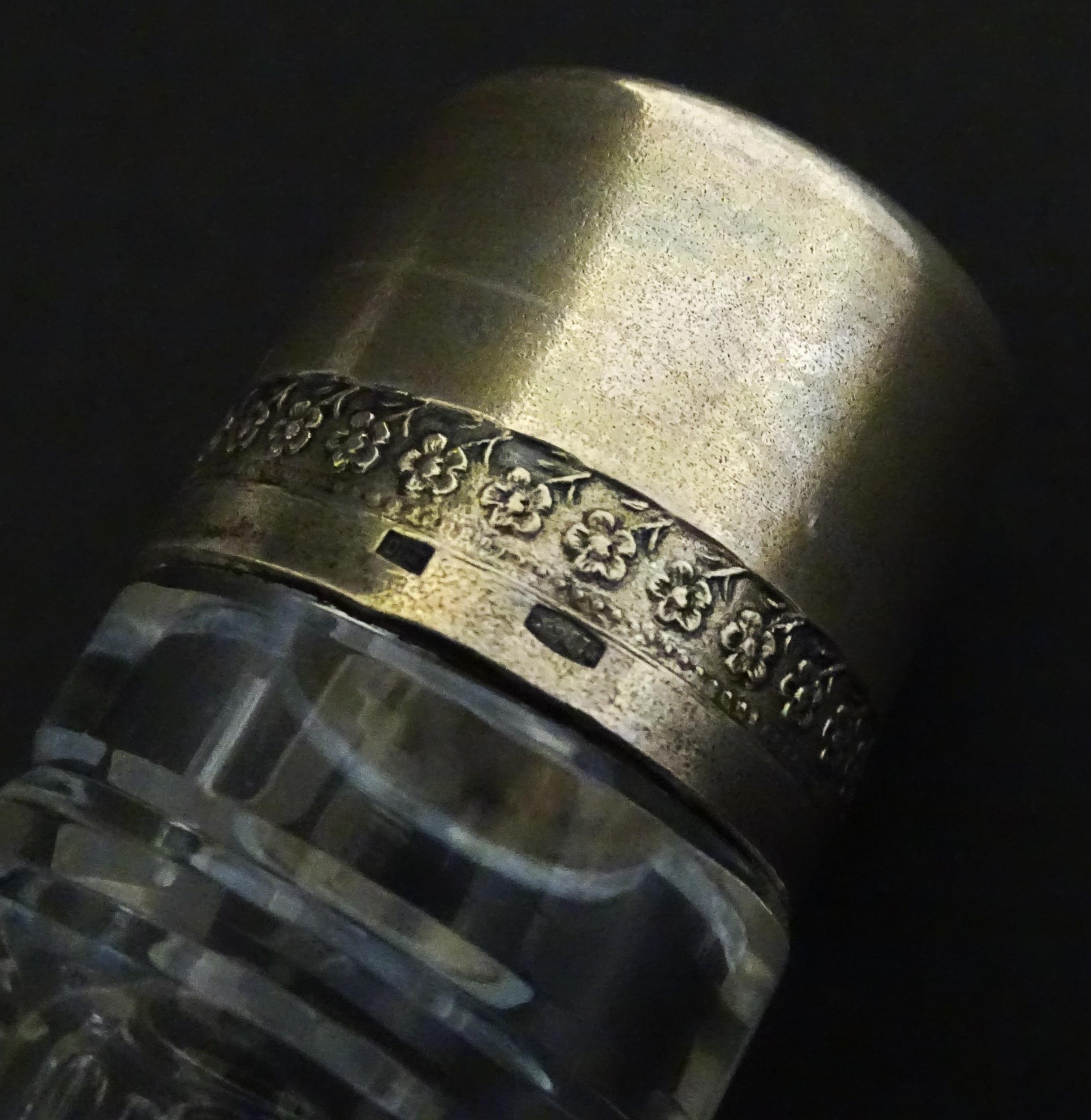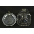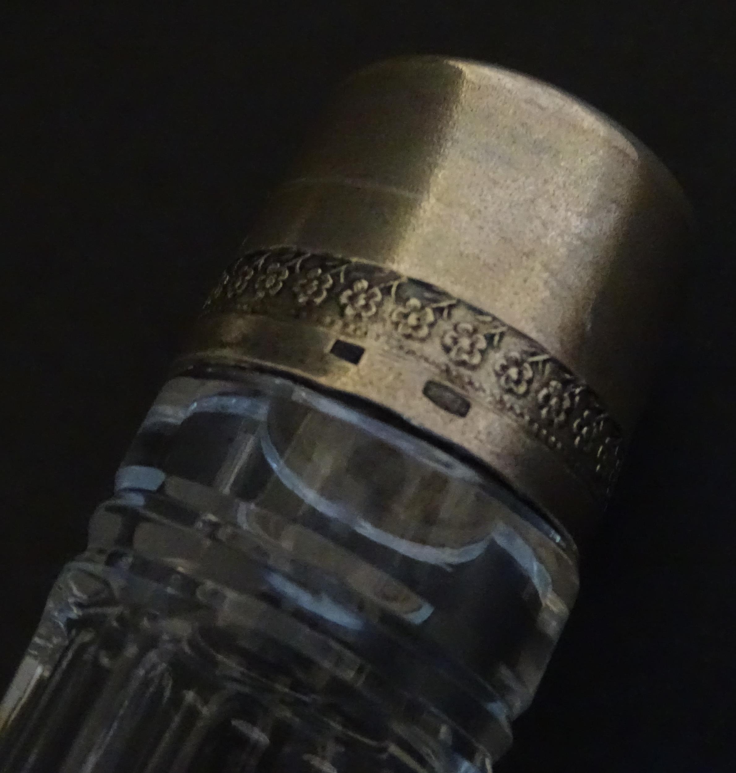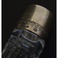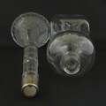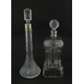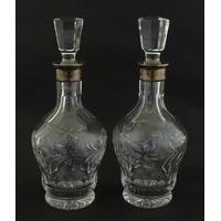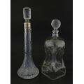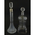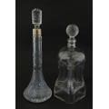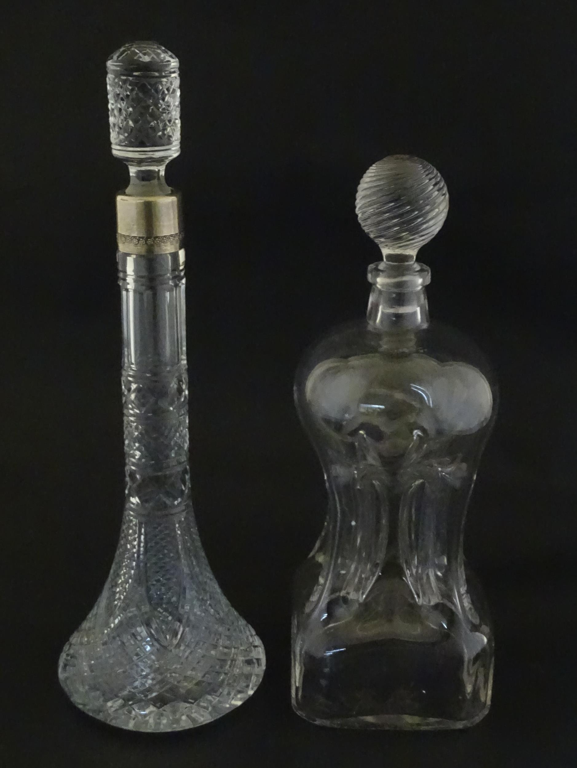 Two decanters, one with Russian silver collar, the other with pinch detail. The tallest approx 13" high