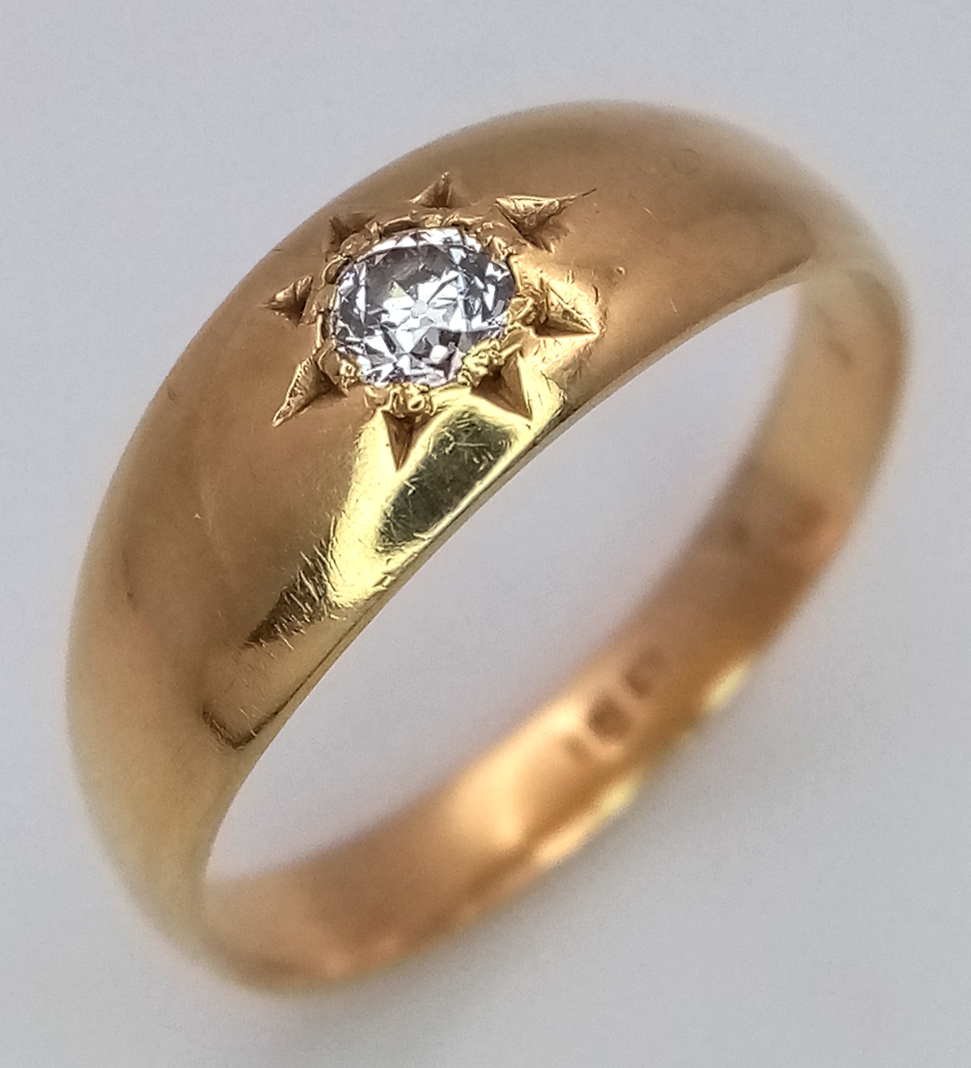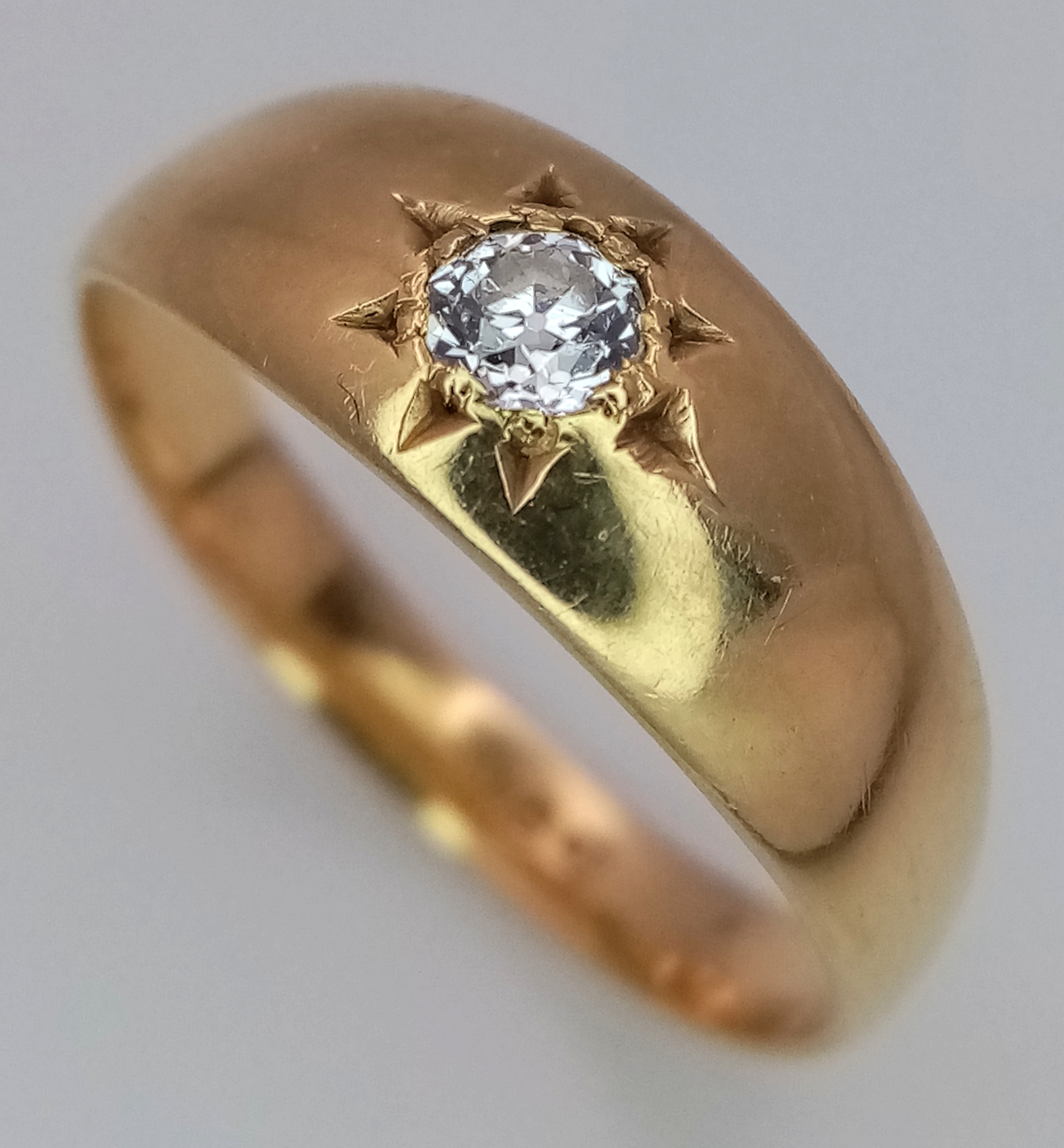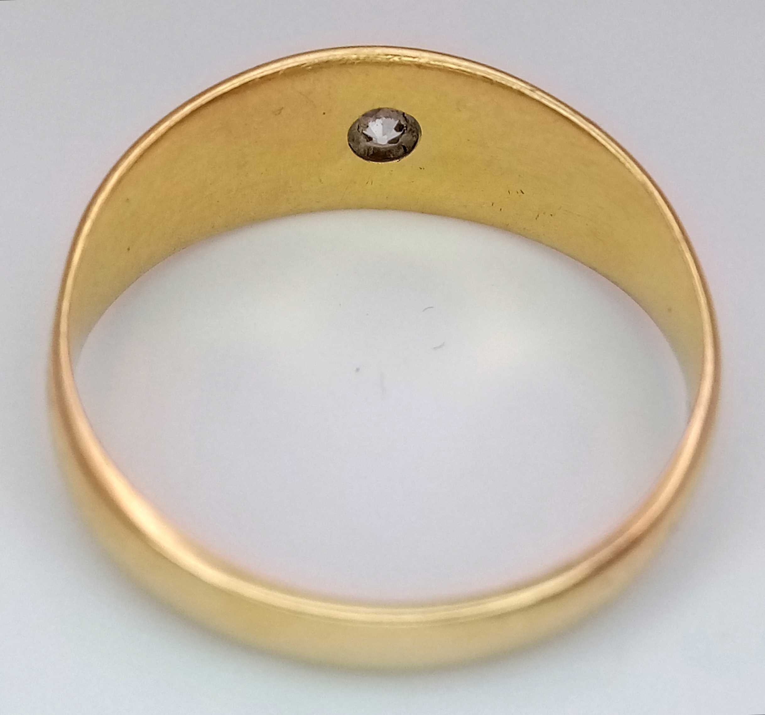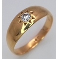 Antique 18 CARAT GOLD and DIAMOND, GYPSY RING. A high quality GOLD BAND with a beautifully cut DIAMOND Set to top. 3.39 grams. Size N - N 1/2. Please see all pictures.