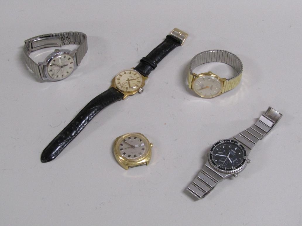 FIVE GENTS WRISTWATCHES TO INCL TIMEX, SEIKO, SEKONDA ETC