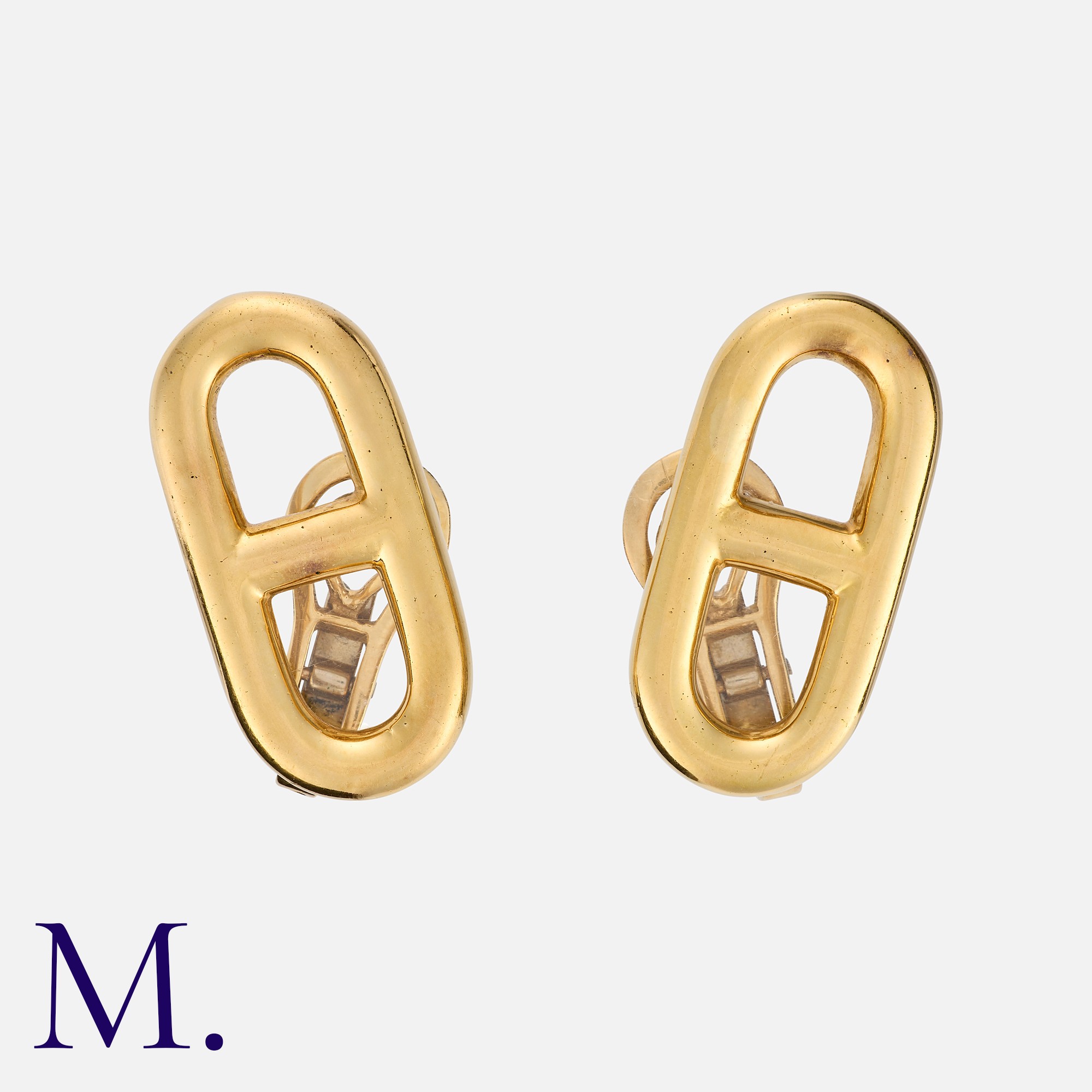 HERMES. A Pair of Anchor Link Earrings in 18K yellow gold with anchor link form. Signed Hermes Paris and French marks for 18ct gold.