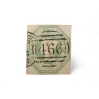 Great Britain 1847 1/- Green with clear Die 2 used on piece with a fine Liverpool spoon cancel. A lovely 4 Margin Copy Cat £1000+