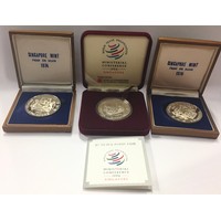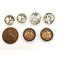 China F.K. custom house 10 cash, Kwang Tung 20 cent, Kiangsi 10 cents, and a 1987 Year of the Rabbit proof silver 10 yuan.
