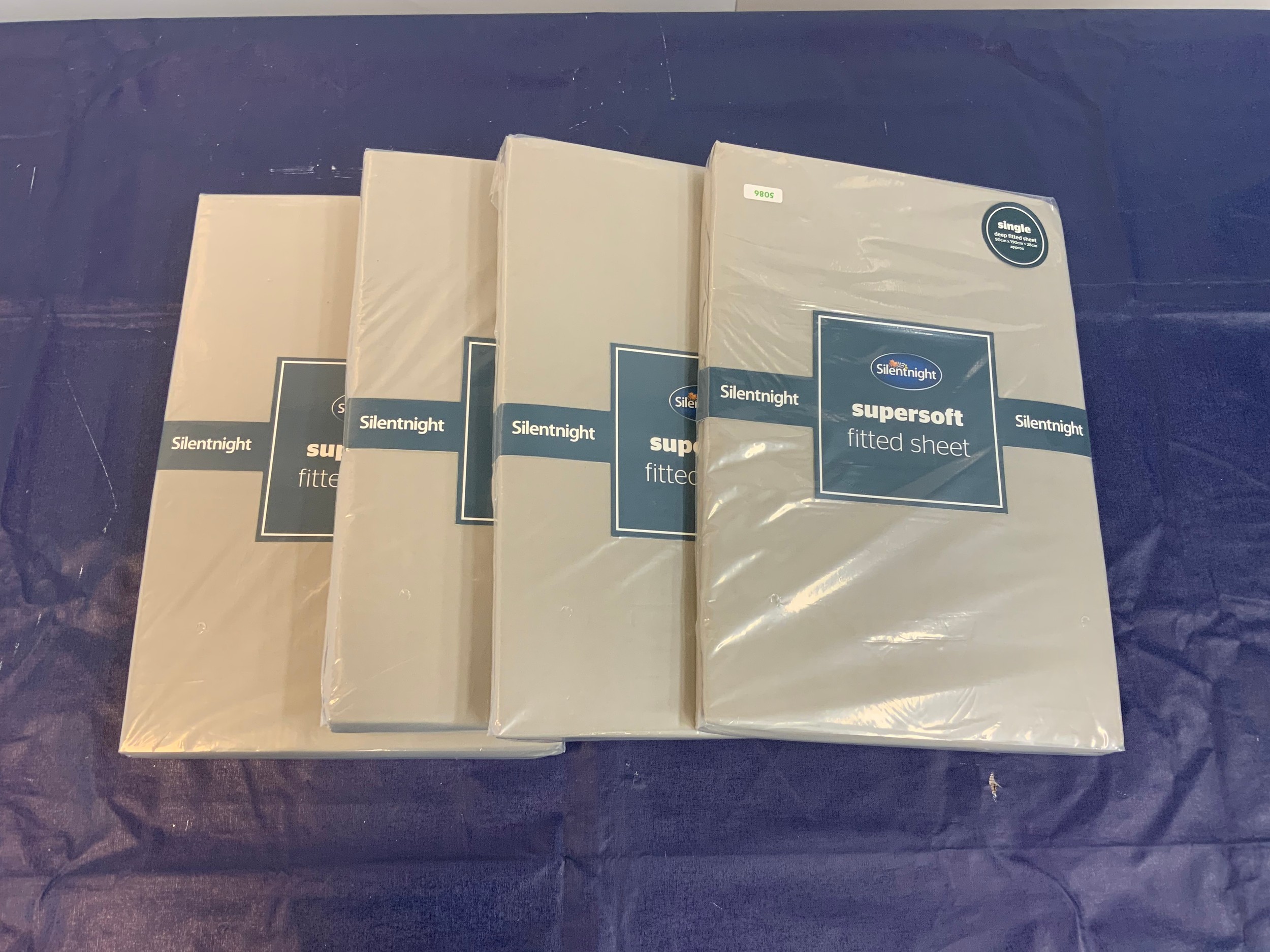 SILENTNIGHT SUPERSOFT FITTED SHEETS GREY SINGLE X 4 TOTAL RRP £36 ( P24270109 / C )