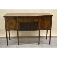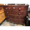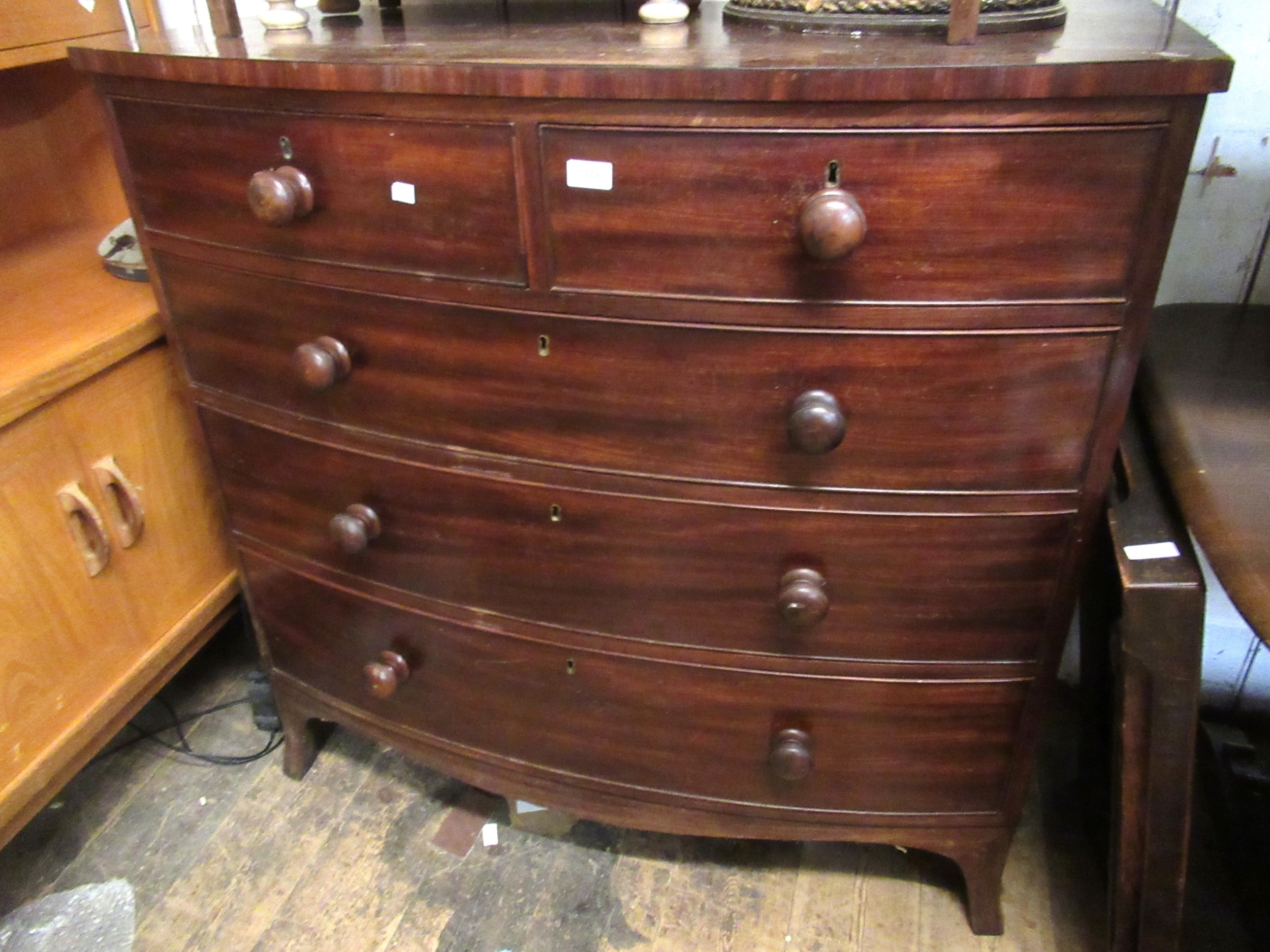 George IV mahogany bow front chest of drawers, the top with an ebony strung edge above two short and three long drawers on splayed bracket feet, 108 x 53 x 107cm
