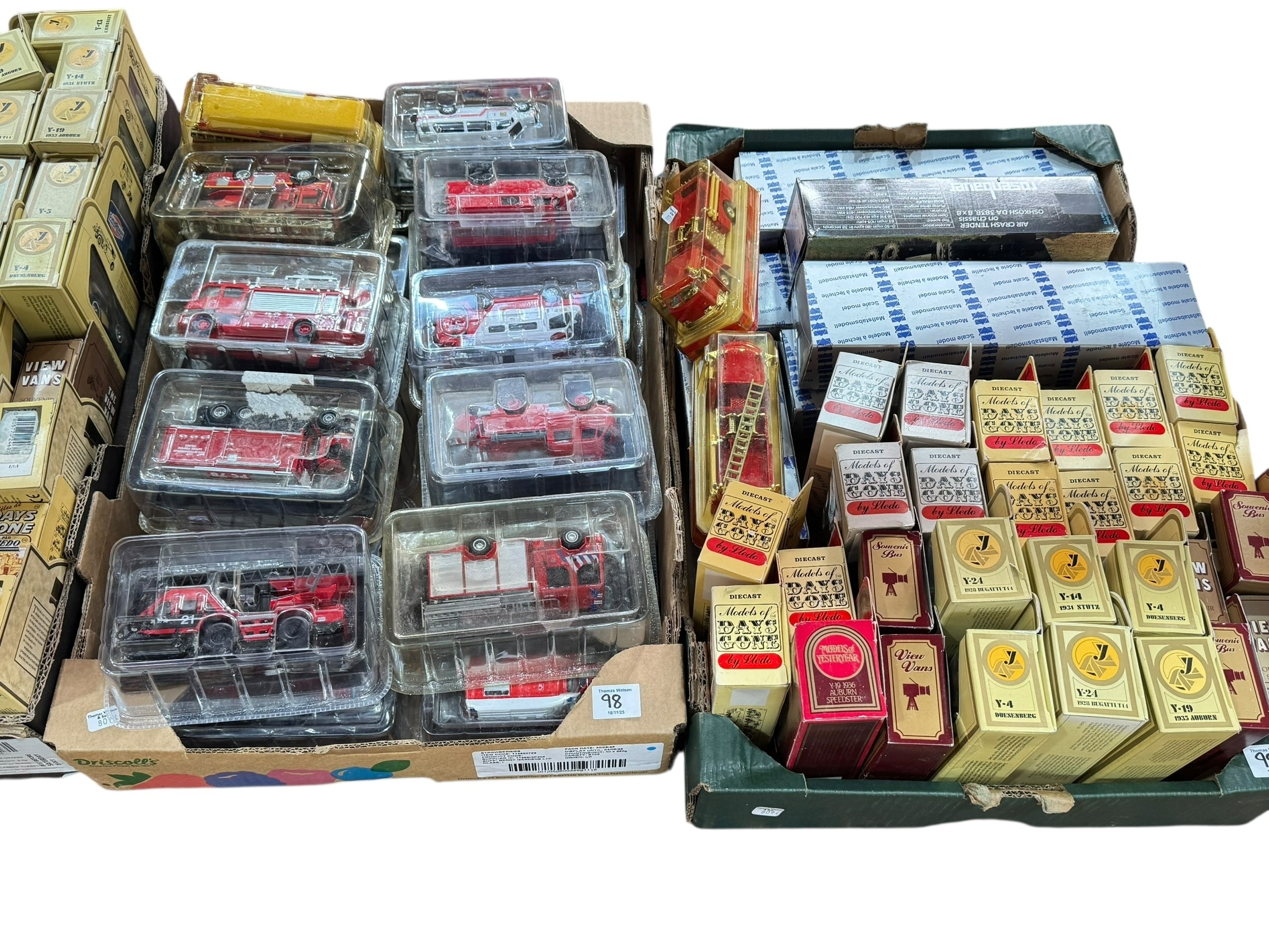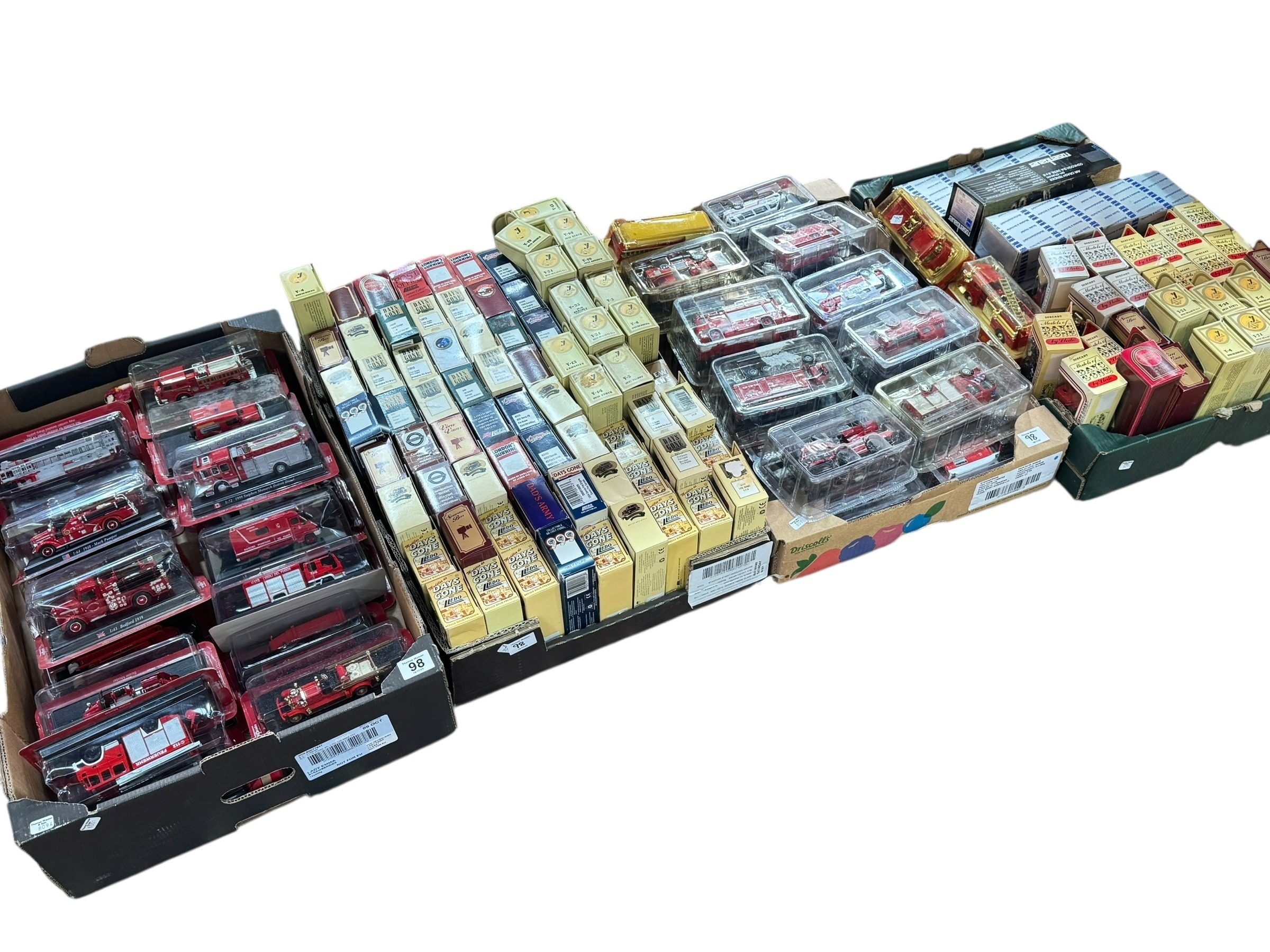 Four boxes of Lledo Days Gone, Del Prado and other fire engines and response vehicles, assorted vehicles, etc.