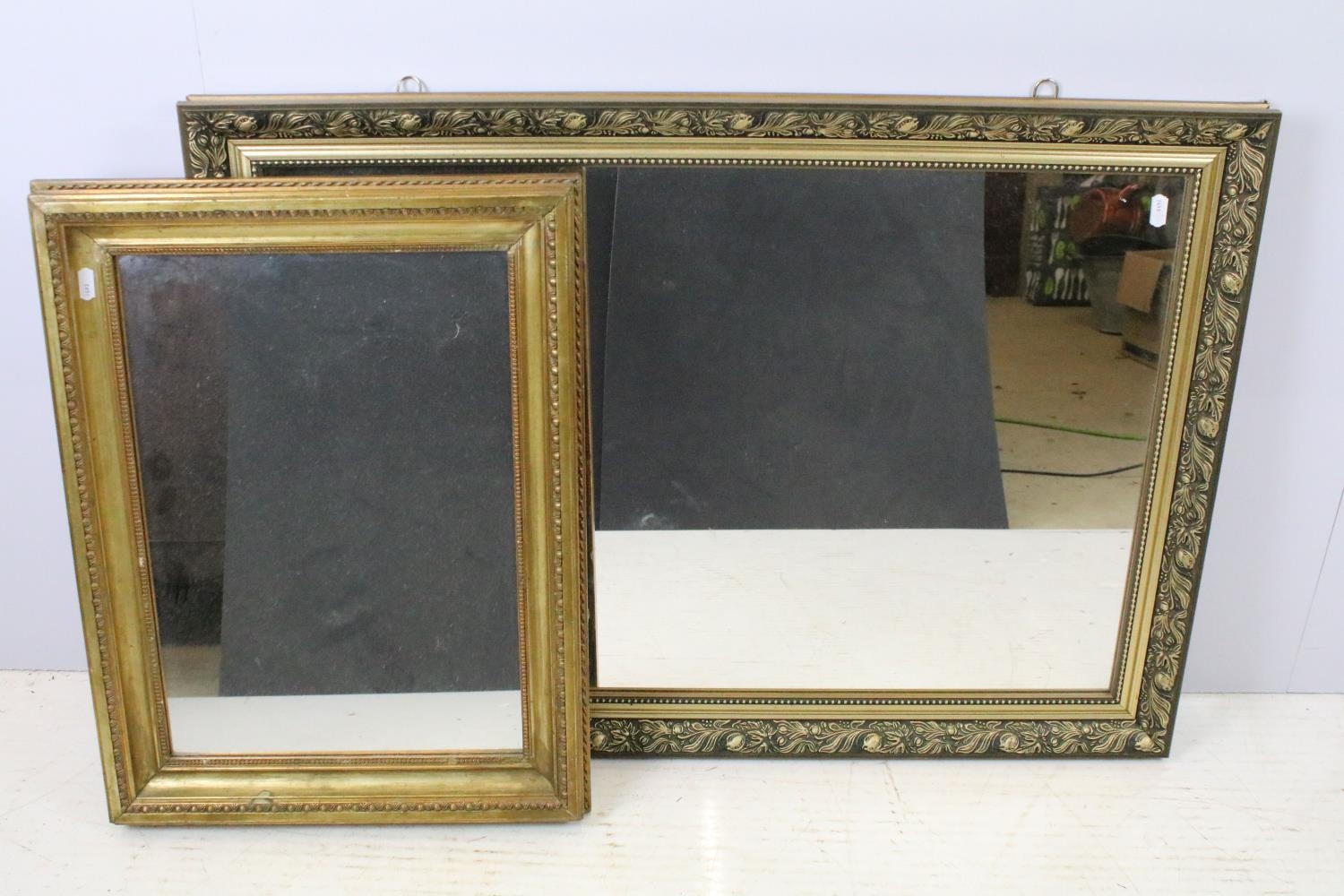Early 20th century gilt framed wall mirror, 57 x 43.5cm together with another gilt framed mirror, the edging decorated with foliate designs, 61 x 86cm