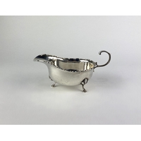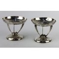A pair of Edwardian Arts & Crafts silver dishes, raised on three legs, with hammered design, makers mark T.W, Birmingham, 1908, weight 7.3oz, height 9cm, width 11cm (2)