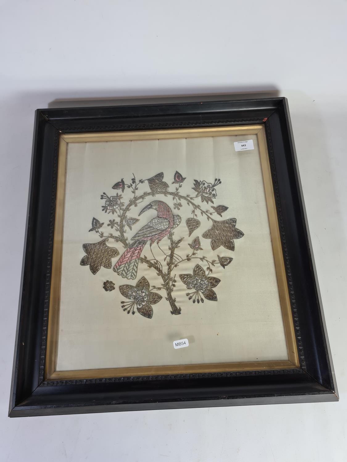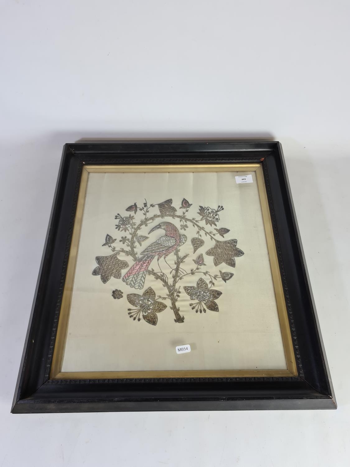 A 19th century framed silk embroidery - approx. 57cm x 52cm with frame