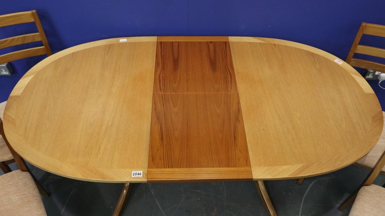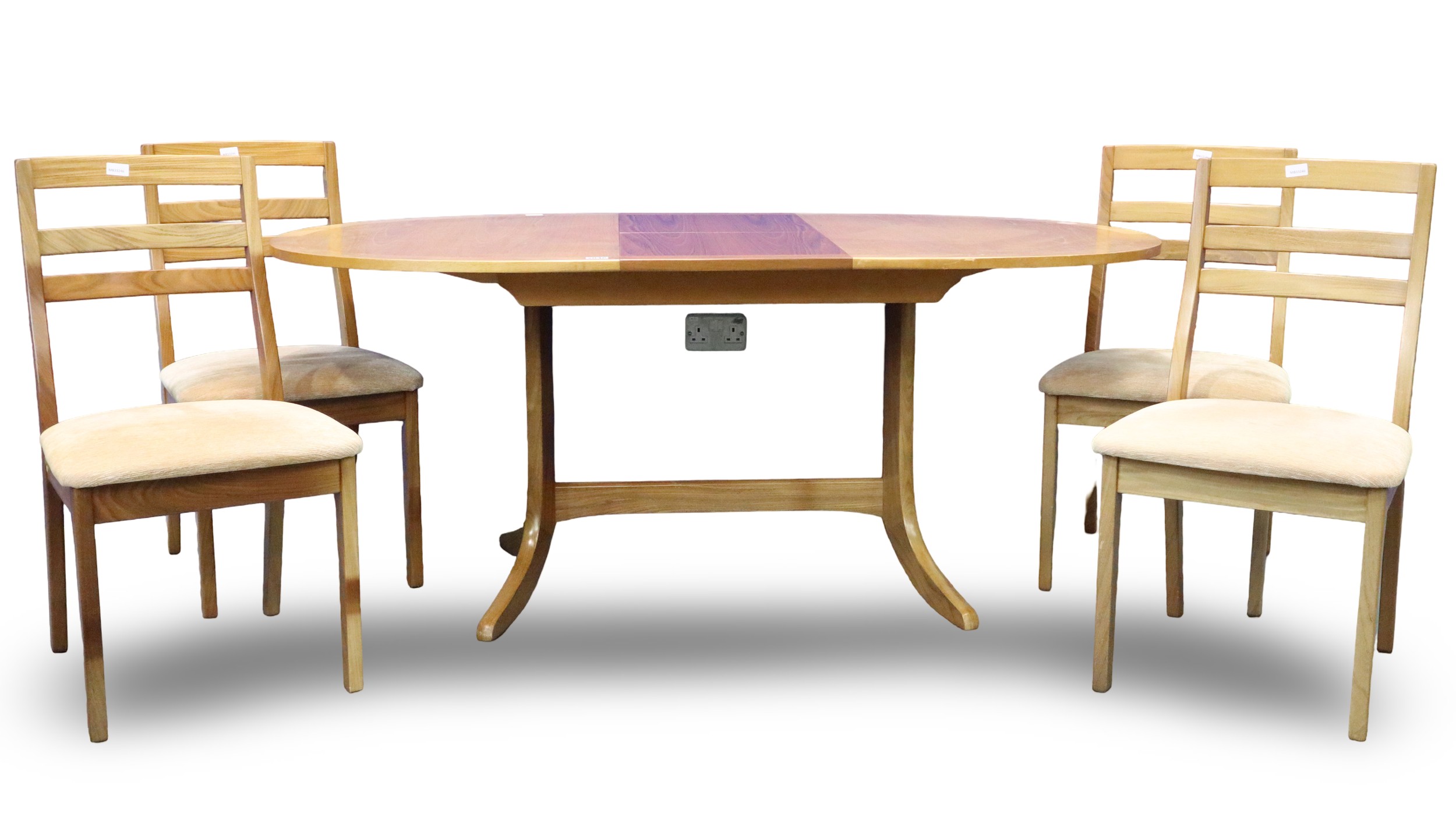 Nathan oval extending dining table, with a set of four upholstered dining chairs. Not available for in-house P&P