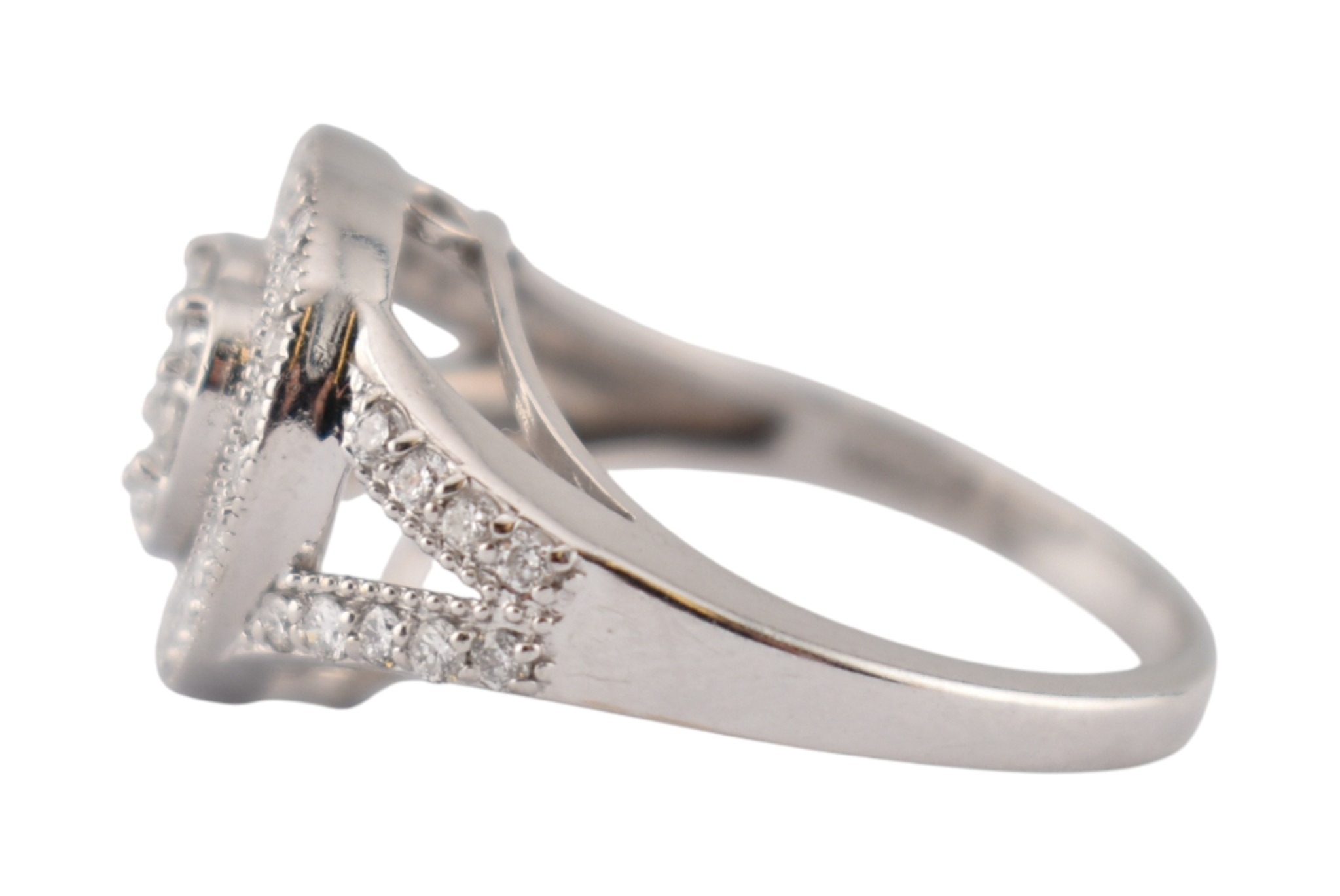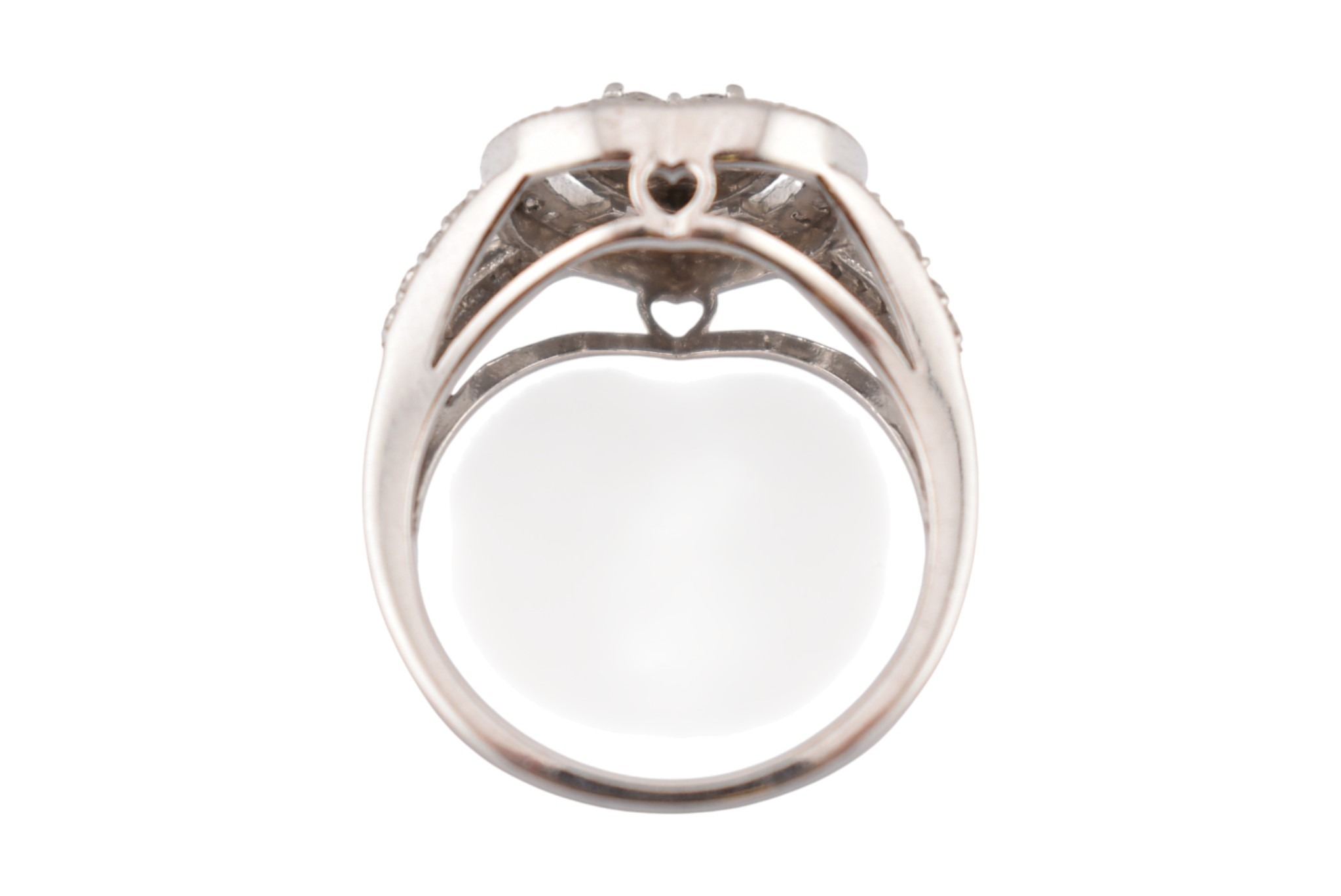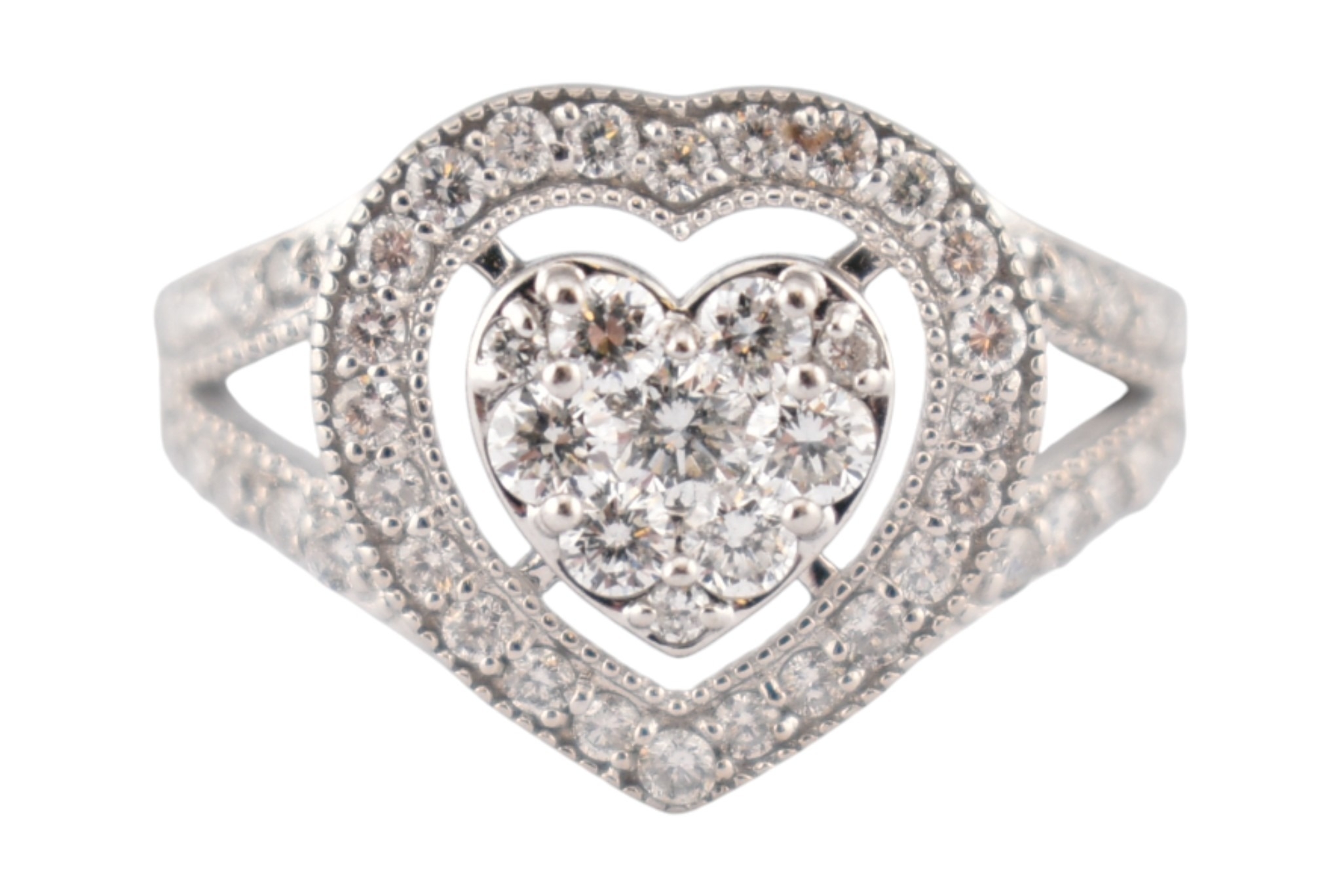 A 14ct gold and diamond heart motif cluster ring. Estimated total diamond weight 1.25cts. Weight 4.4g. Size M.5