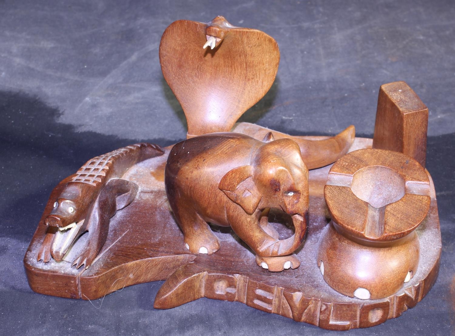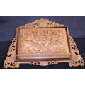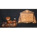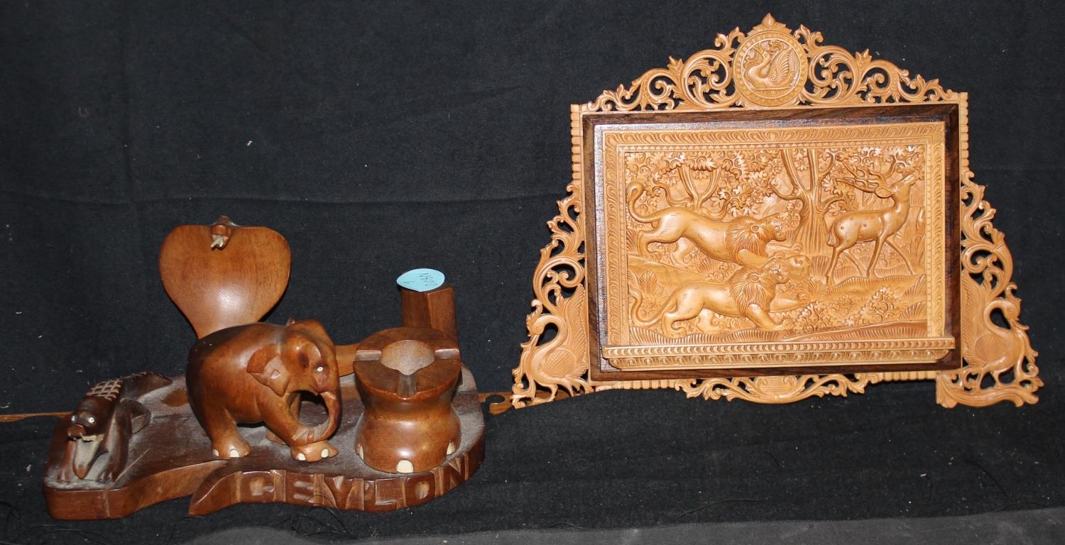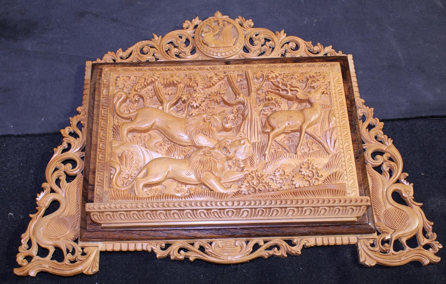 CEYLON WOODEN TABLE CENTRE & LIONS HUNTING PLAQUE
