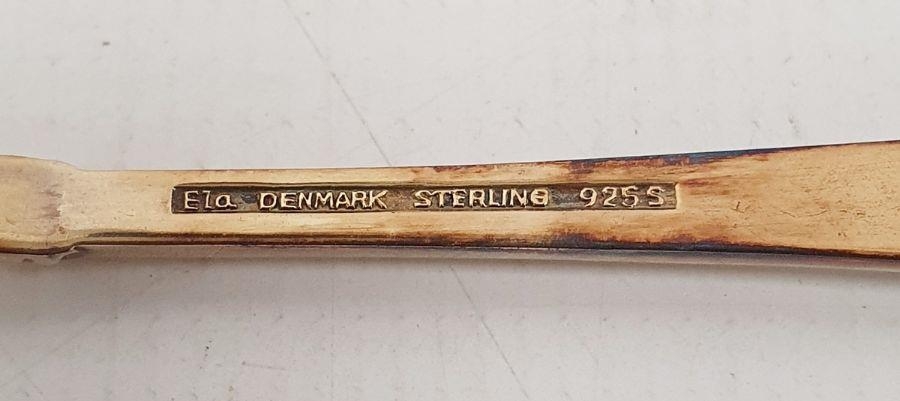 Set of six silver-gilt and coloured enamel souvenir spoons marked 'Denmark Sterling 925', in fitted case and a cased set of six Japanese sterling teaspoons with faux-pearl encased finial, in fitted box (2)