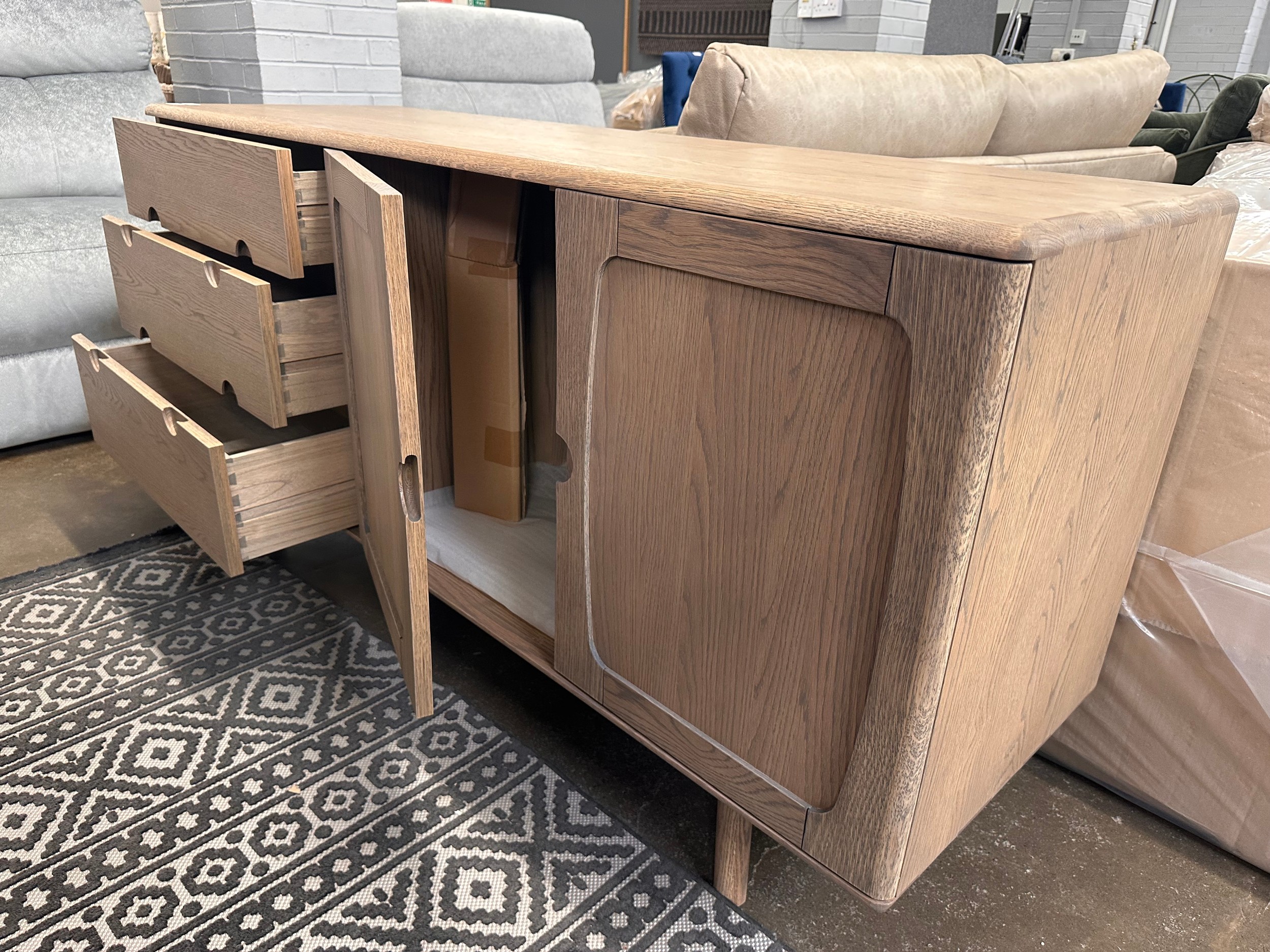A Holcot mid century style oak 2 door, 3 drawer sideboard
