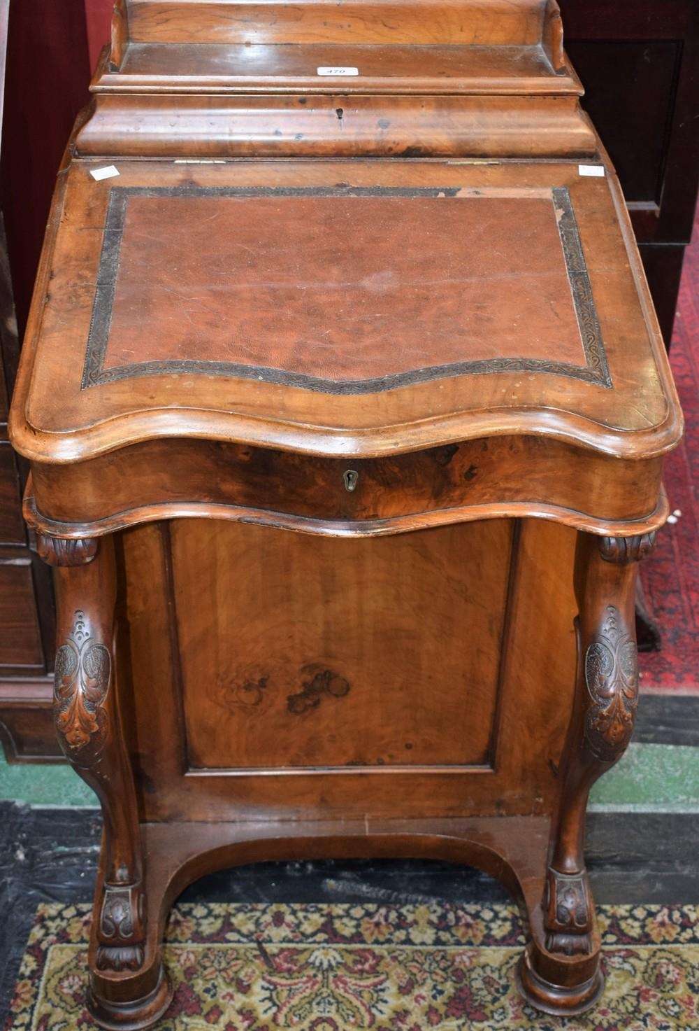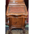 A Victorian walnut Davenport, the superstructure with a three-quarter galleried hinged cover enclosing a fitted interior above a hinged serpentine writing surface enclosing a further fitted interior, drawers to side, 95cm high