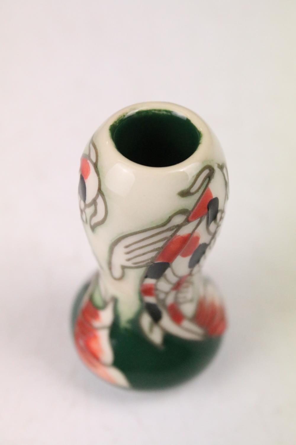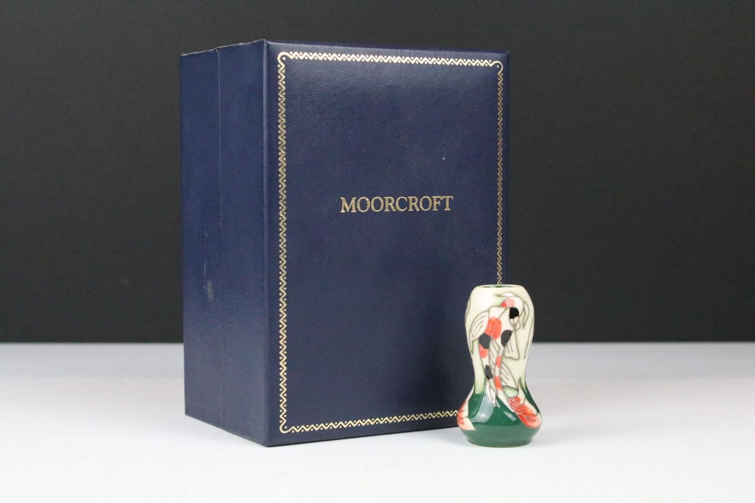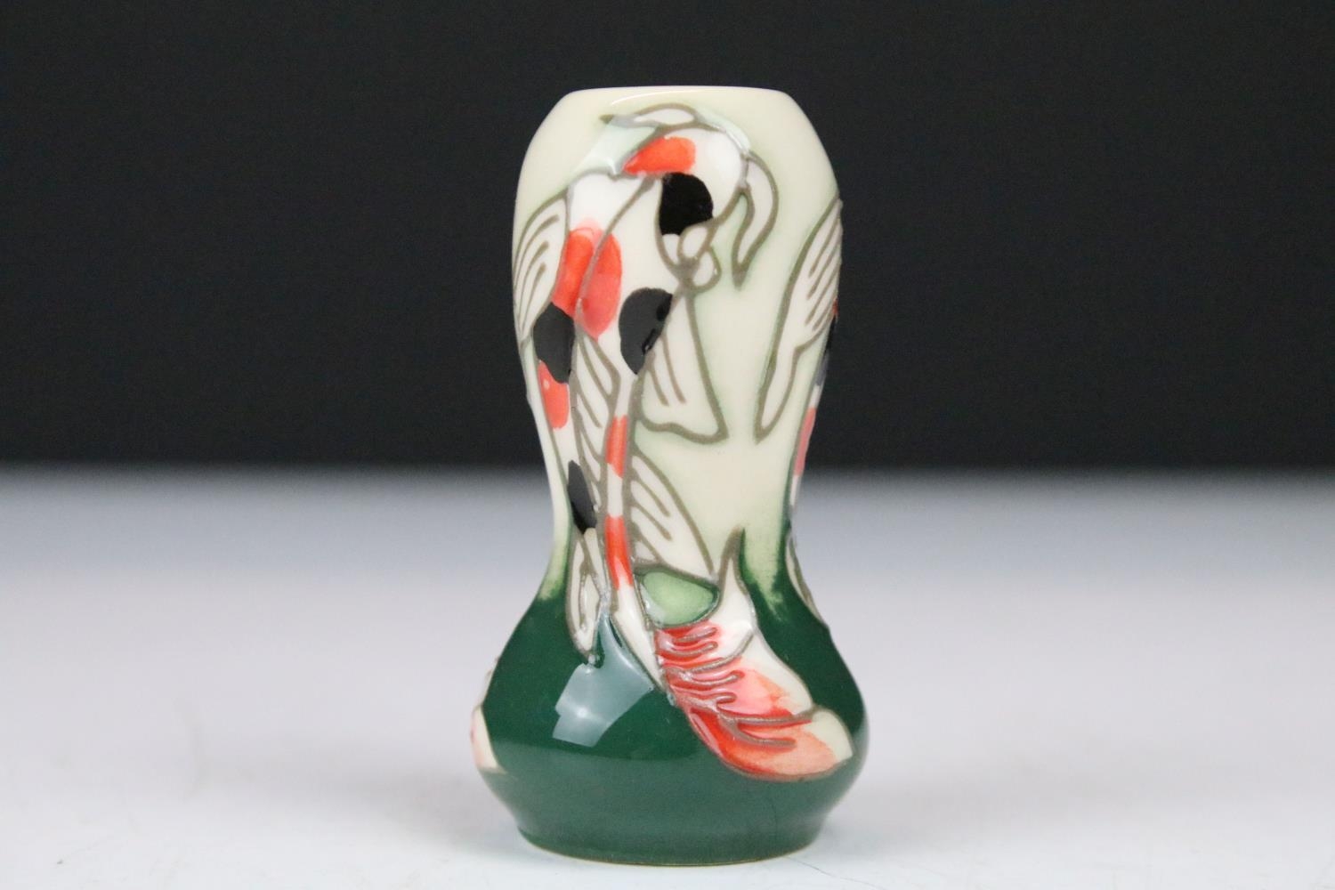 Moorcroft pottery miniature vase, painted in the Sri Lanka 'Koi Carp'' design by Vicky Lovatt, approx 5.5cm tall, boxed