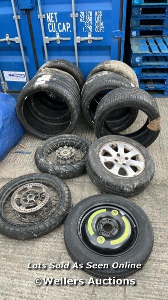 JOB LOT OF ASSORTED WHEELS AND TYRES