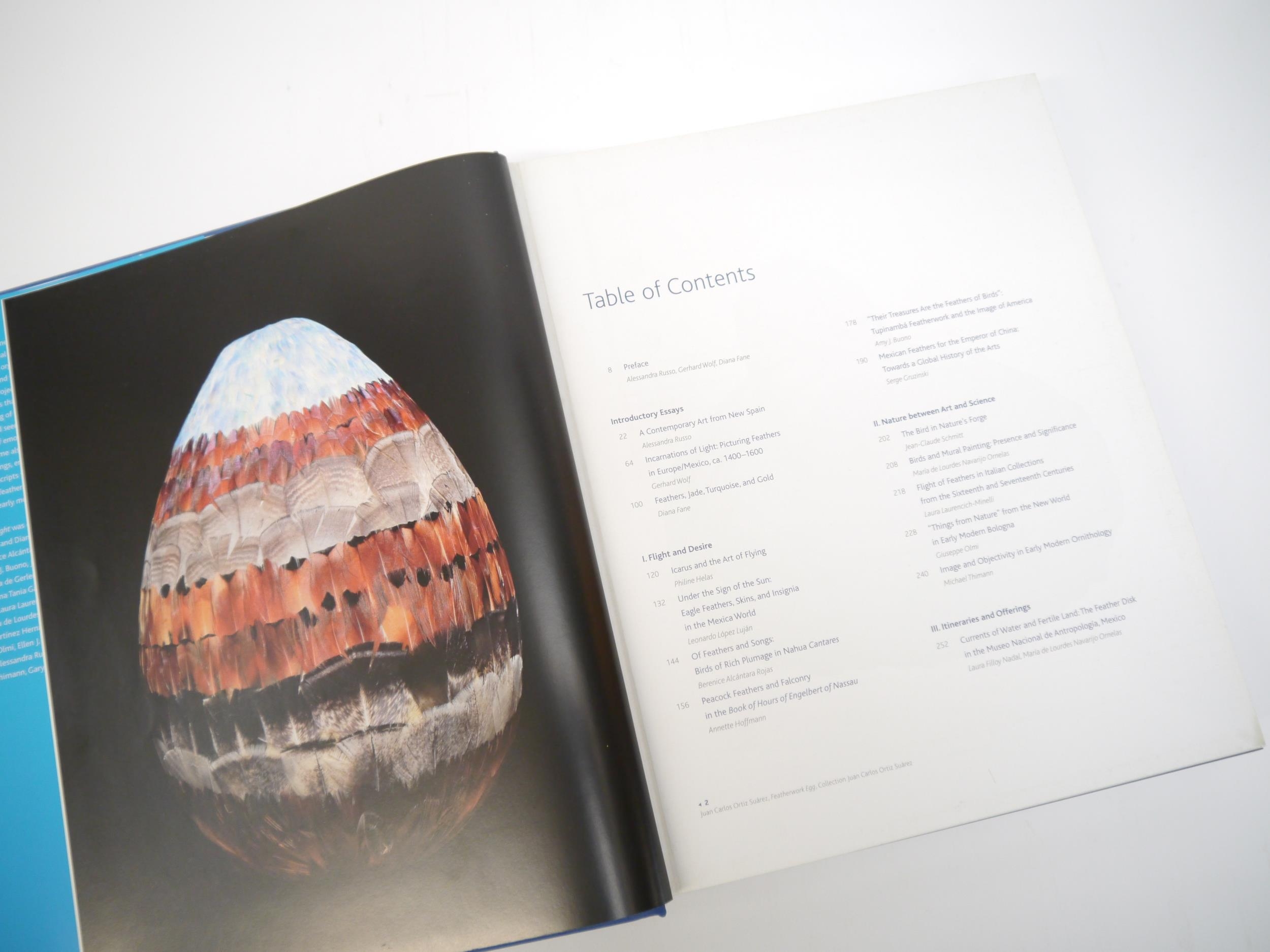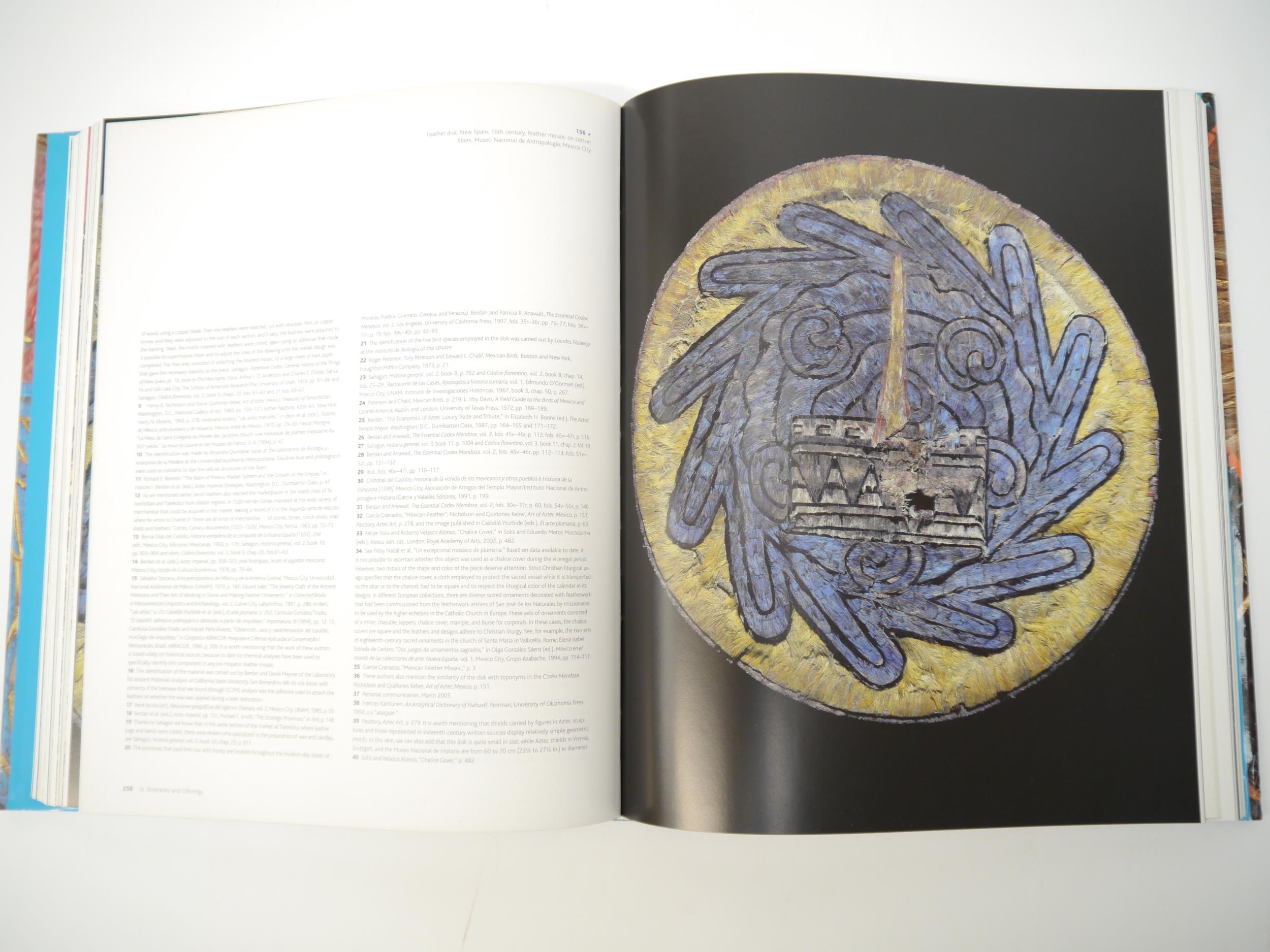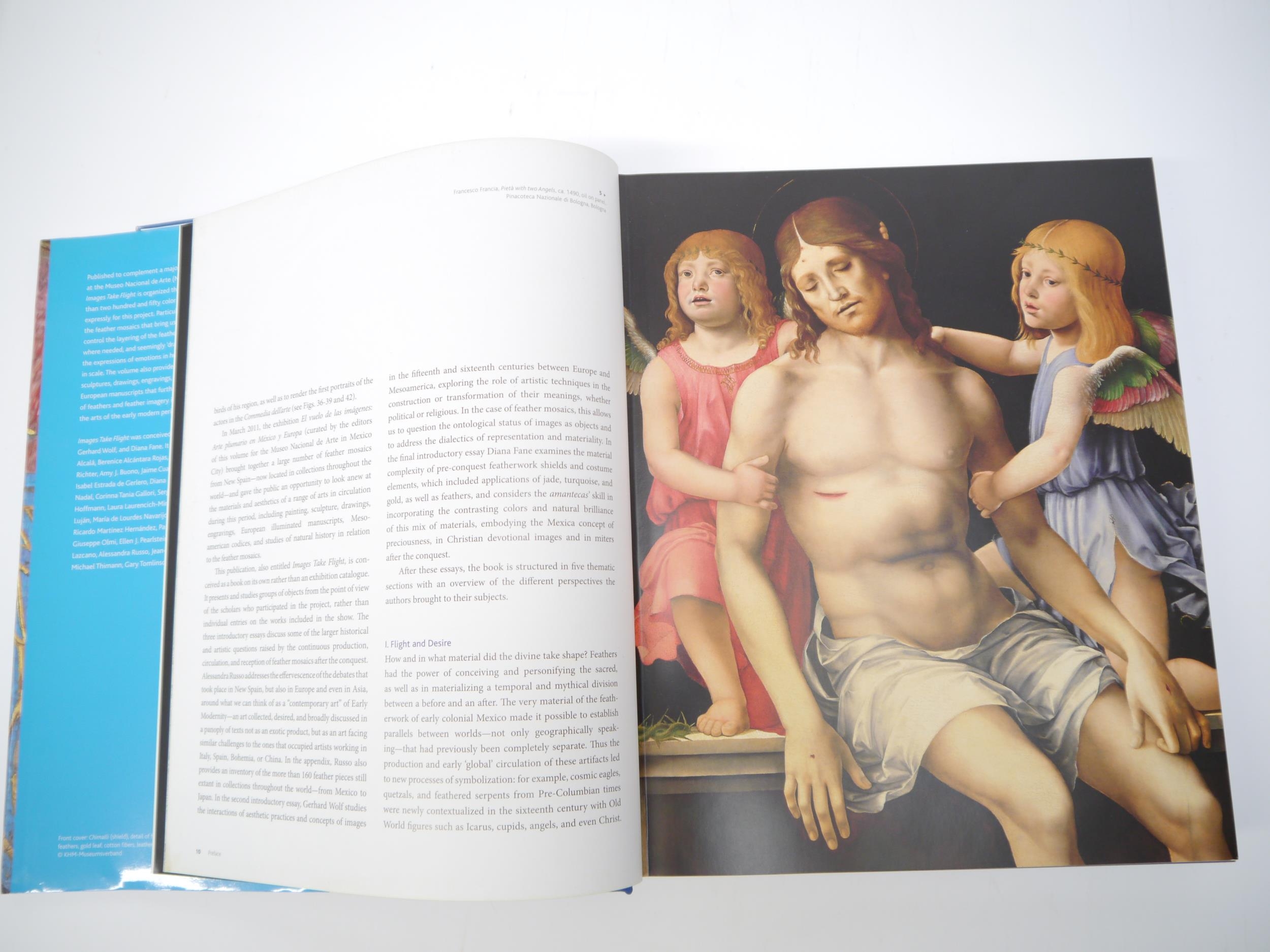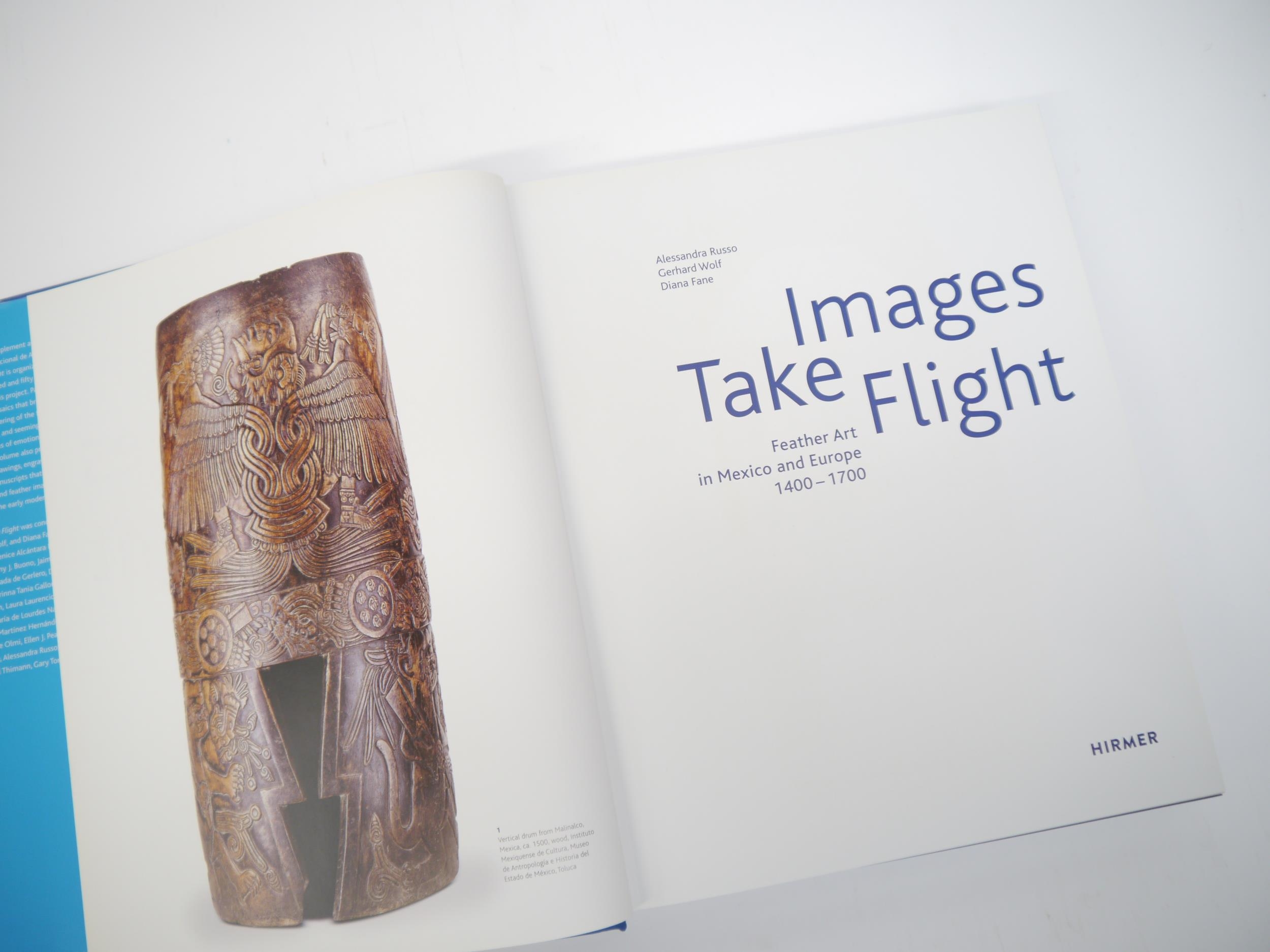 Alessandra Russo, Gerhard Wolf, Diana Fane et al: 'Images Take Flight: Feather Art in Mexico and Europe 1400-1700', Munich, Hirmer, [2015], 1st edition, 480pp, profusely colour illustrated throughout, 4to, original cloth gilt, dust wrapper. A scholarly and visually magnificent multi-authored work that reveals how feathers, birds, and images of flight became defining signifiers within art, thinking, and history during the geographical expansion of Europe into the Americas from the fifteenth through the eighteenth centuries. Among the Prehispanic Mexica (commonly known as the Aztec), representations of feathers were ubiquitous in pictorial and sculptural art to indicate hybrid beings or conceptual ideas. The Mexica also had feather artists, known as amantecas in Nahuatl, who used actual feathers in complex visual compositions on shields, headdresses, or clothing. These Pre-Columbian feather mosaics, and ones the Mexica amantecas continued to make into the eighteenth century, were the catalyst for a changing view of feathers, flight, and representation, and they are the central, recurring focus of the entire book. Scarce