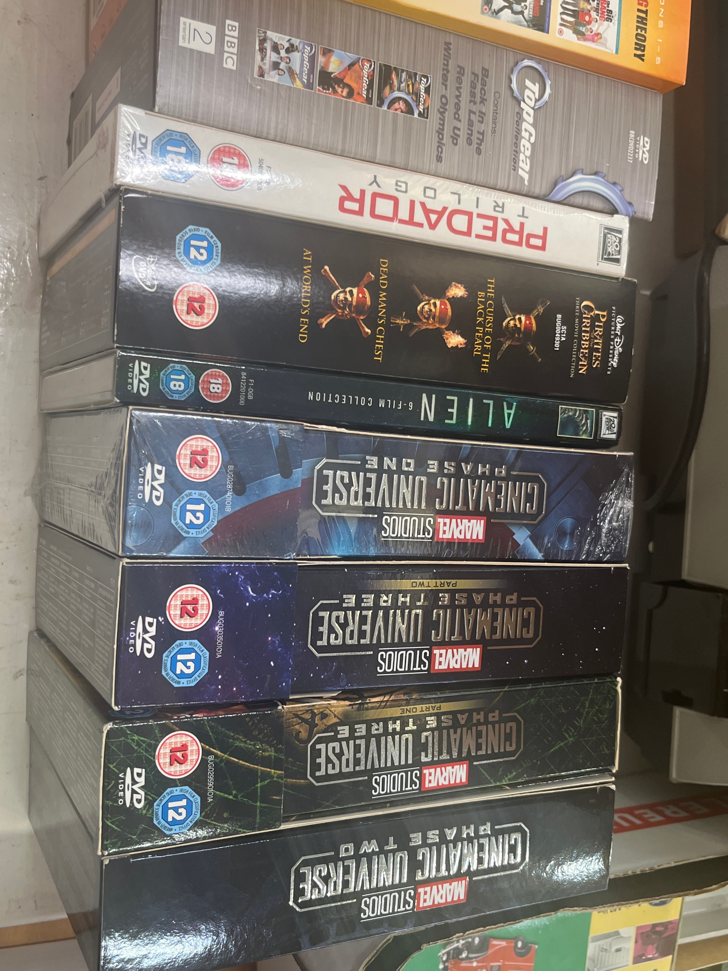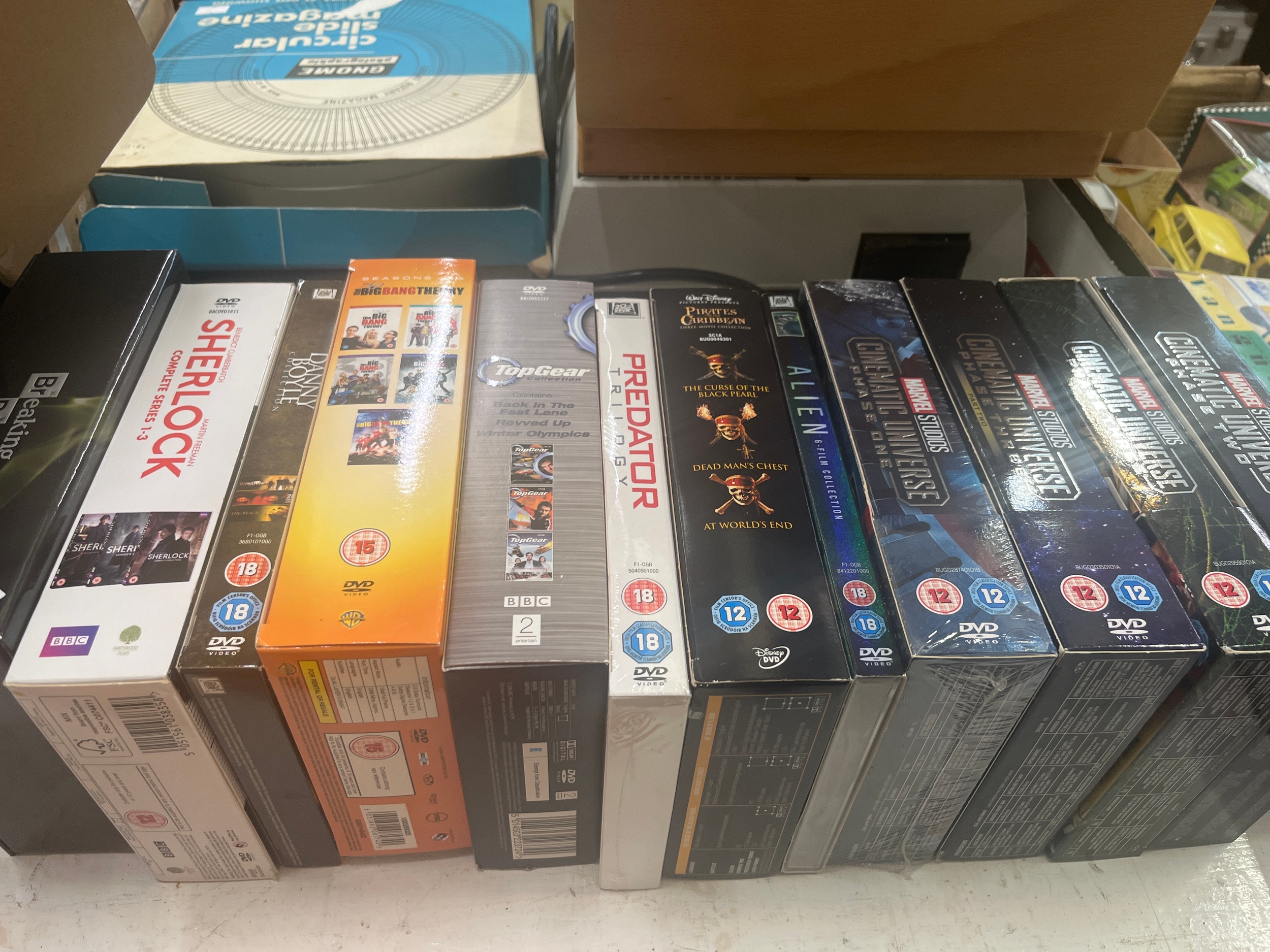 Box sets - Marvel Studios Cinematic Universe phase one, two, three, The Big BAng Theory, Danny BOyle etc