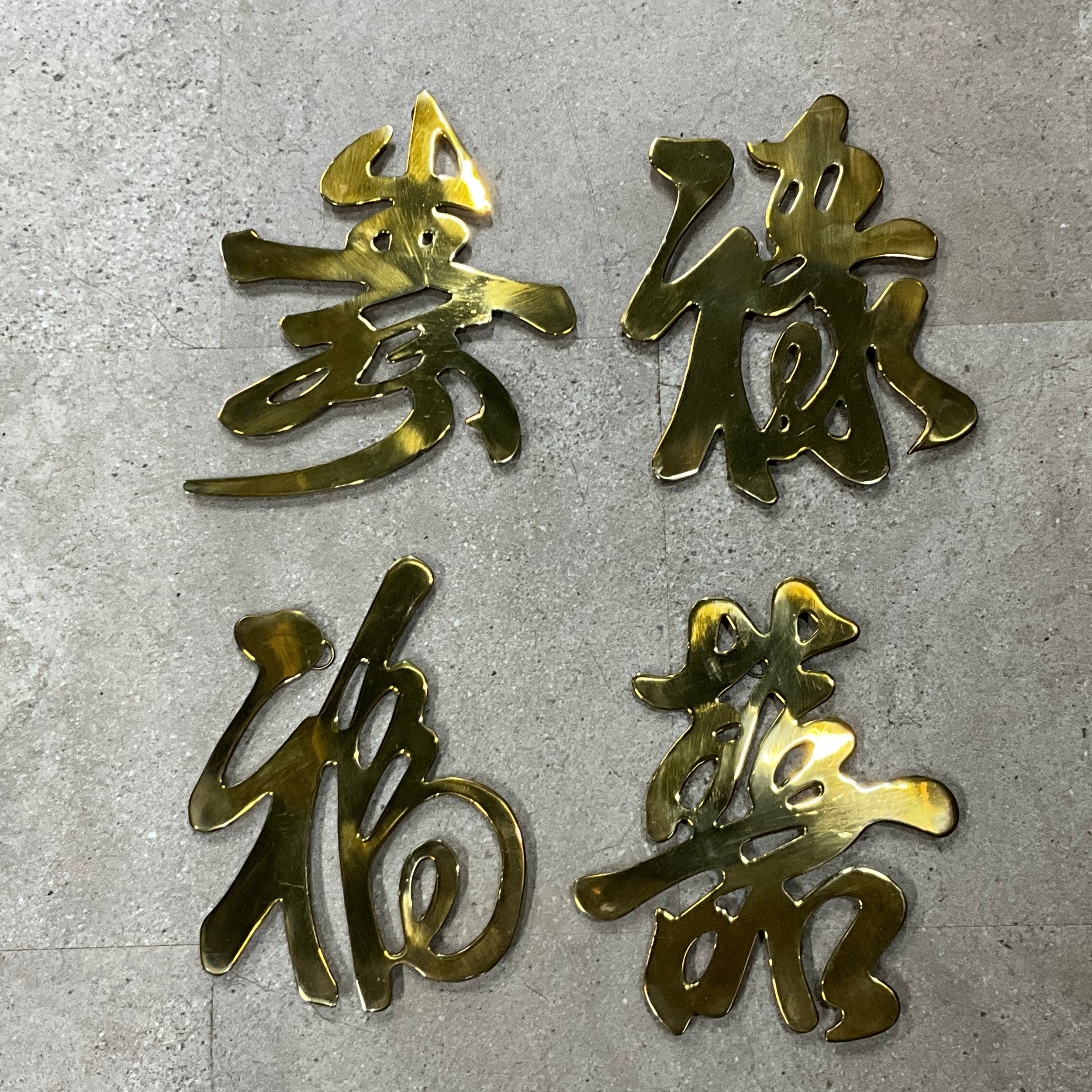 Four brass Chinese letters. Approx 23cm x 19cm.