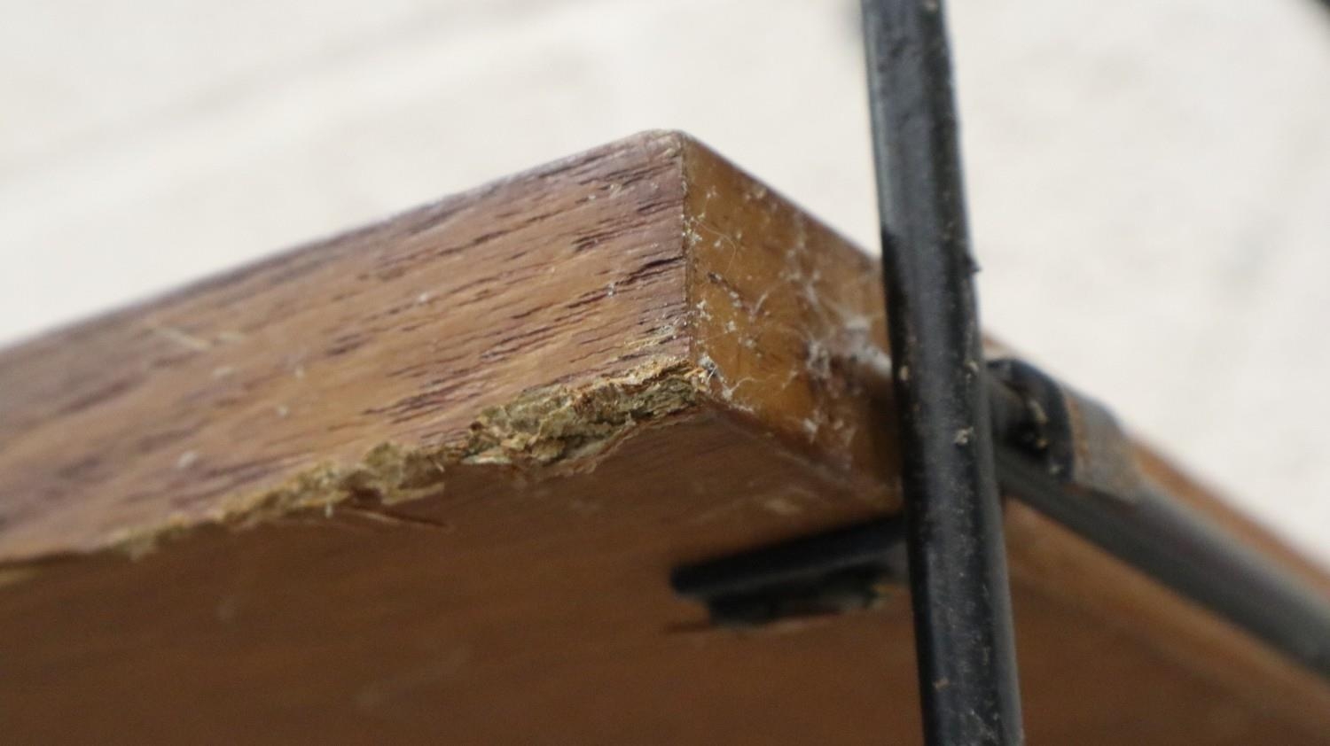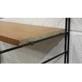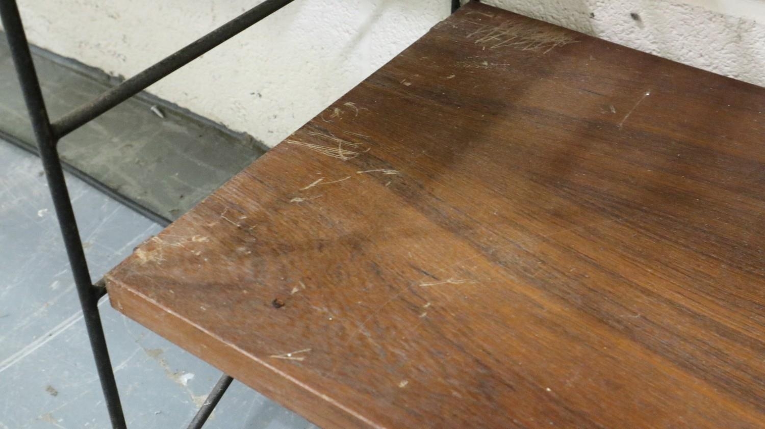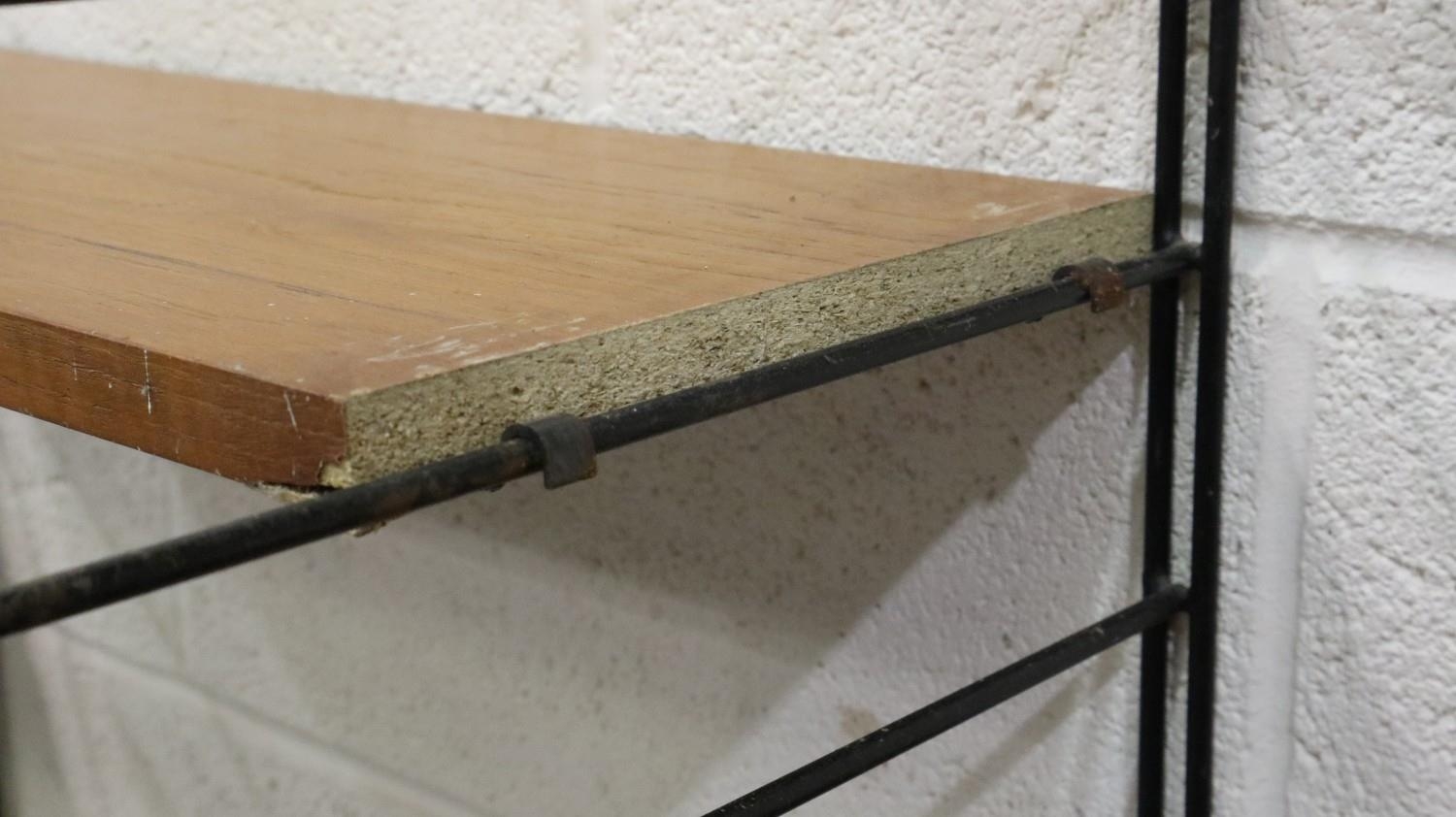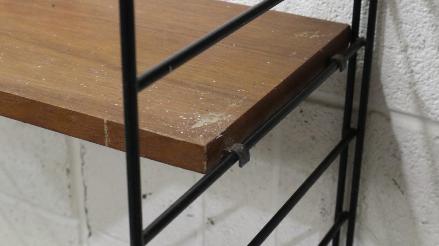 Mid 20th century modular bookcase in the manner of Ladderrax, comprising six upright supports and shelves of varying depth and length. Not available for in-house P&P