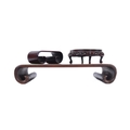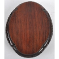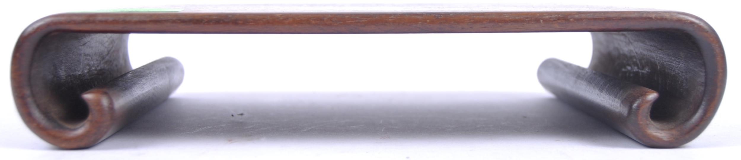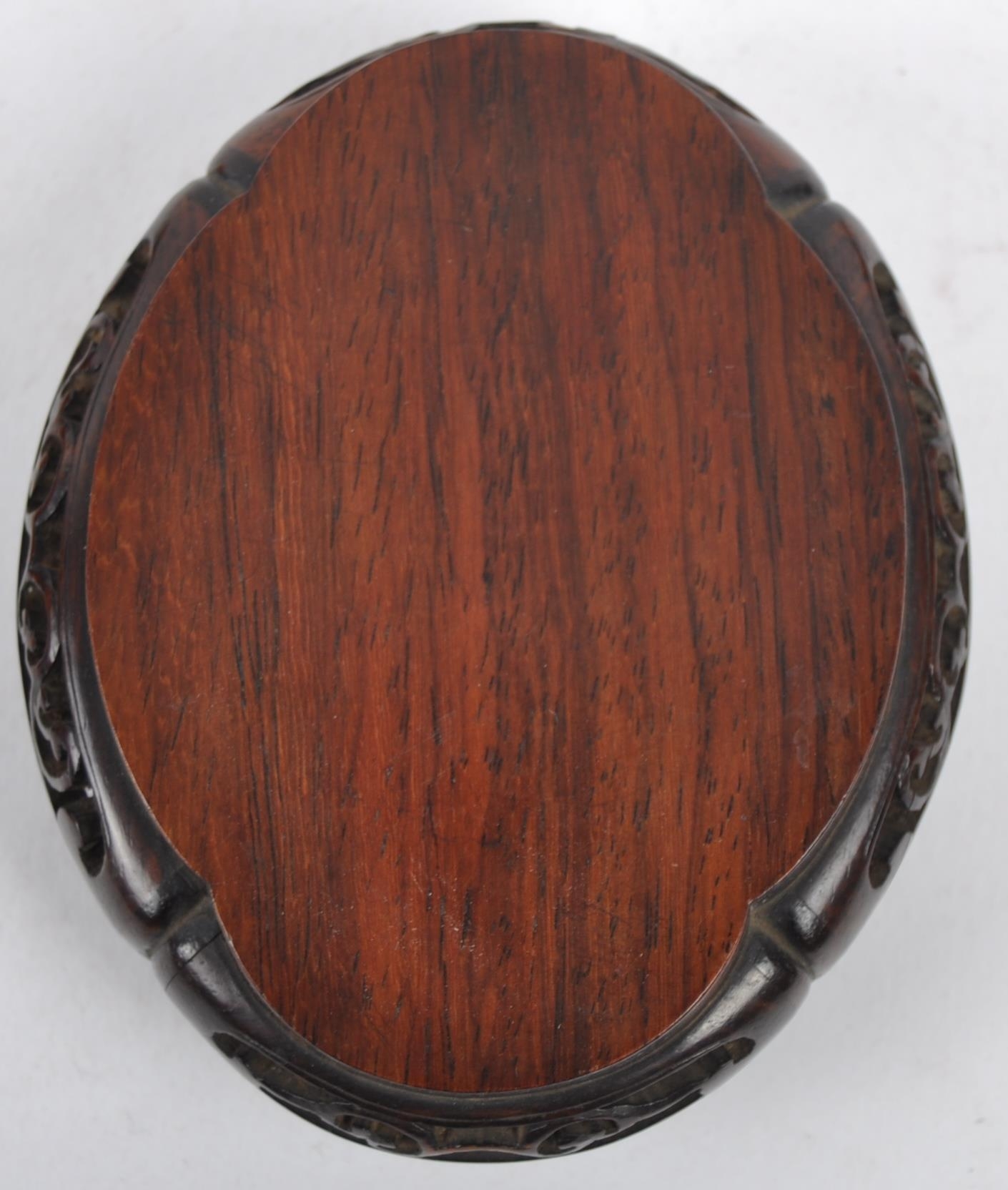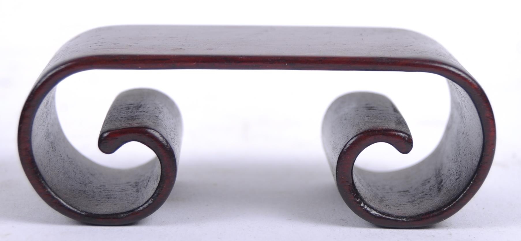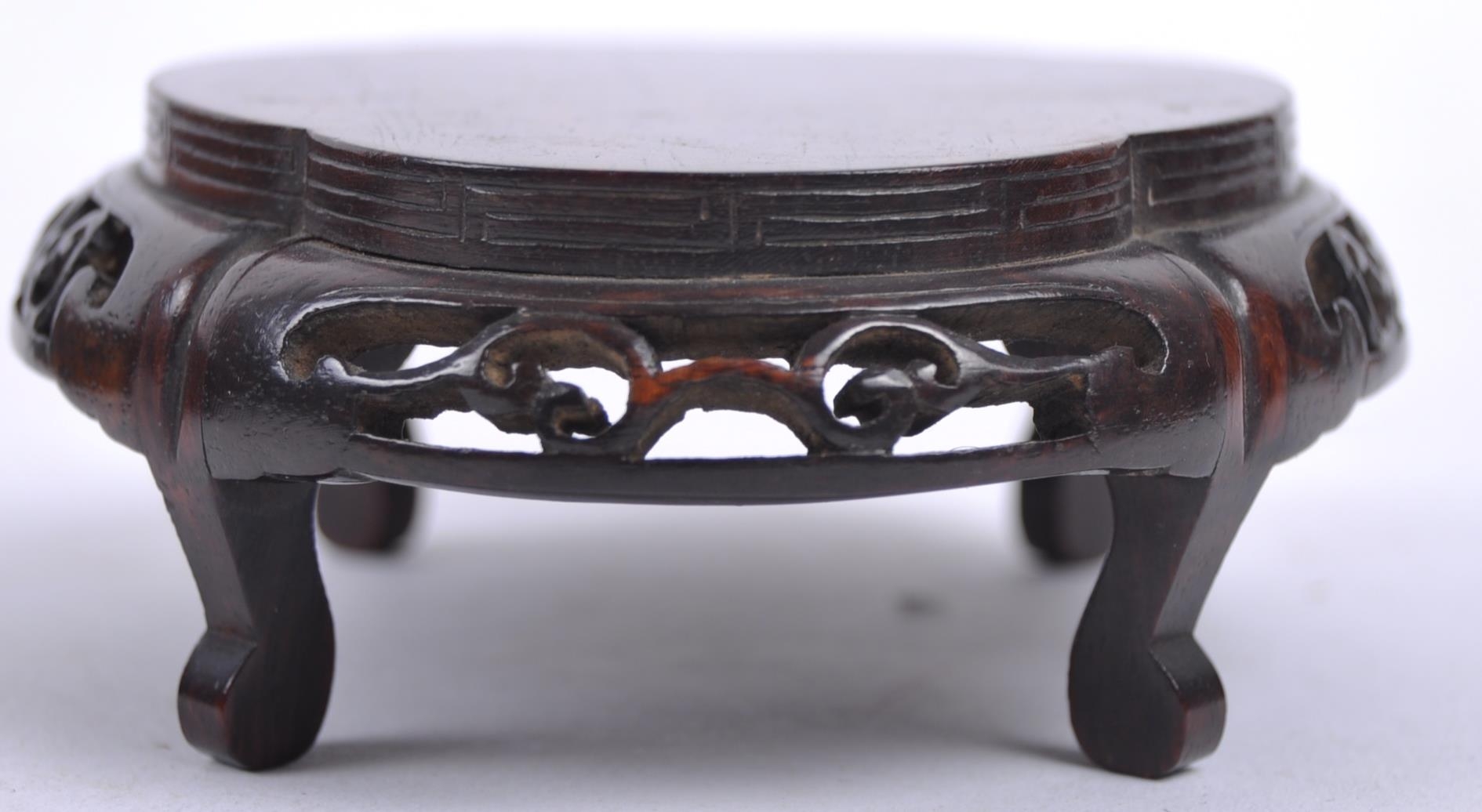 A group of three Chinese carved hardwood stand dating from the 19th Century to include a large stand on two scroll legs, a pierced stand and another scroll stand. Measures approx; 25cm wide.