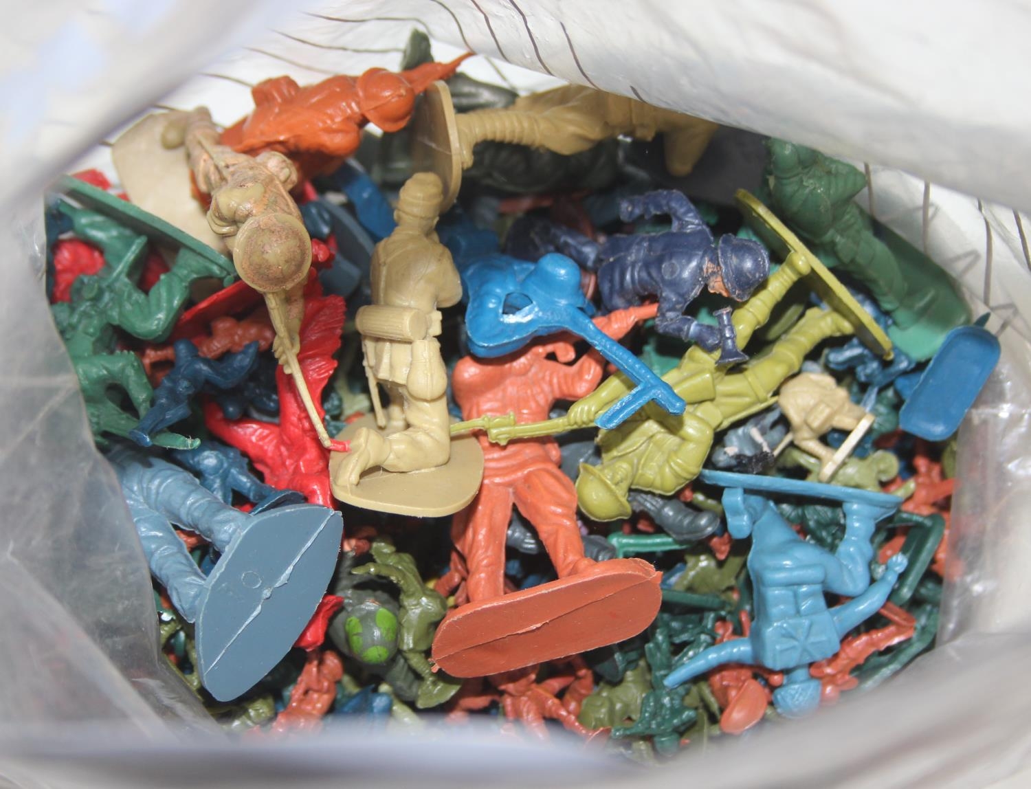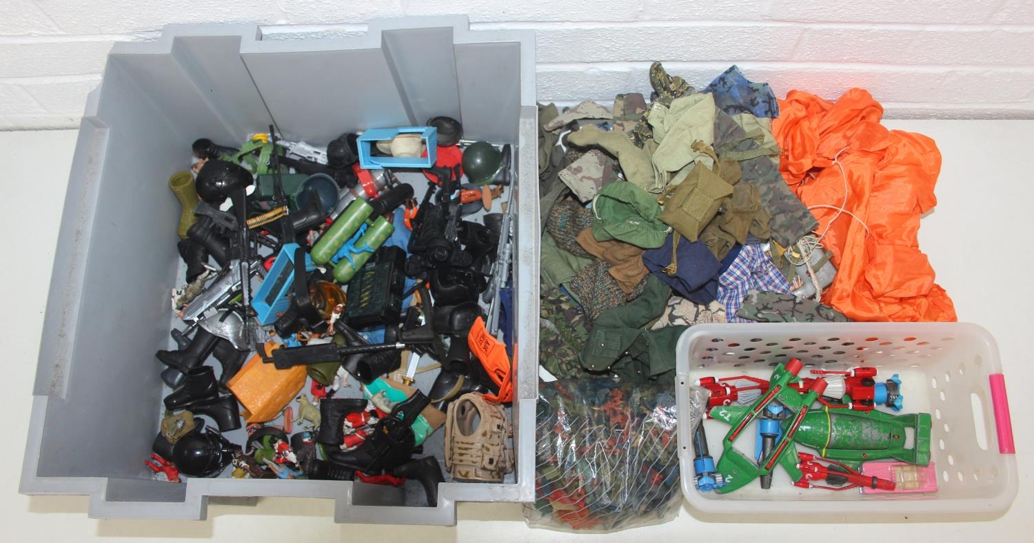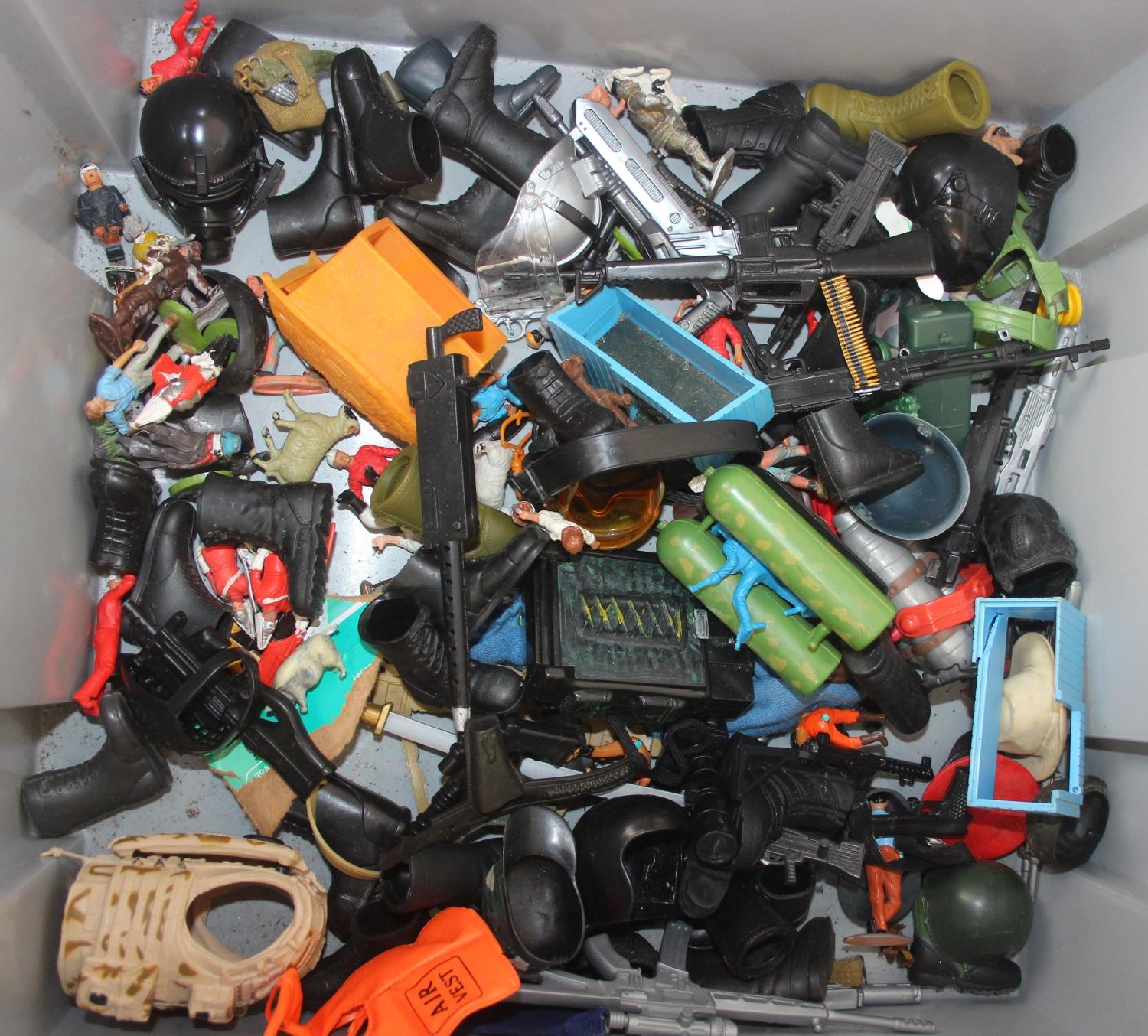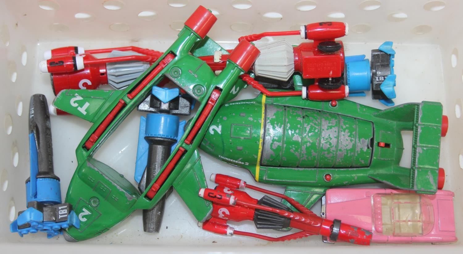 Qty of assorted mixed toys to inc Action Man, Thunderbirds models, various toy soldiers etc