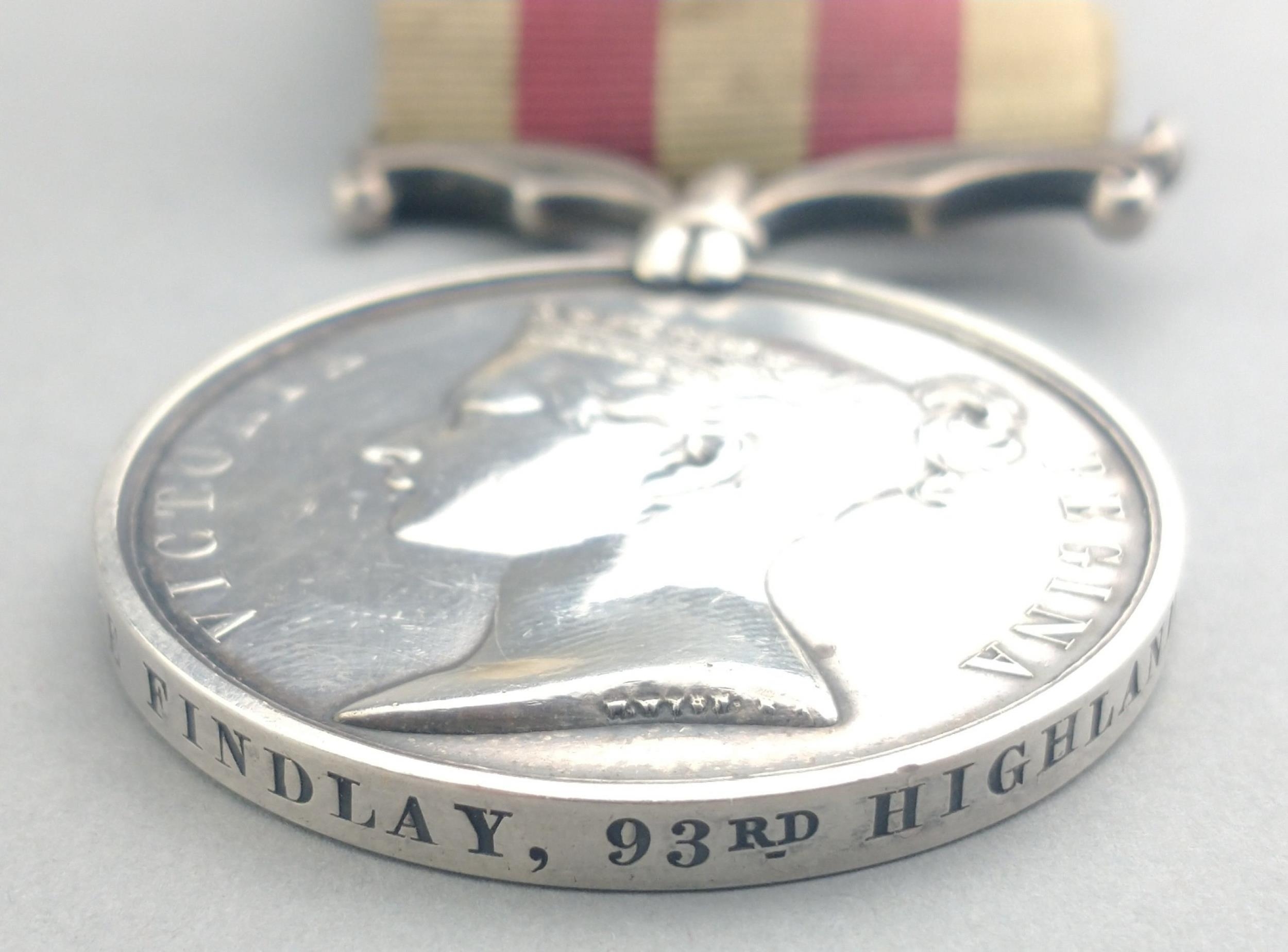 VICTORIA India 1857-1858 Medal awarded to Carnegie Findlay 93rd HIGHLANDERS