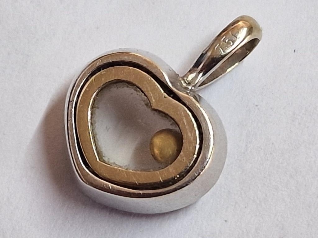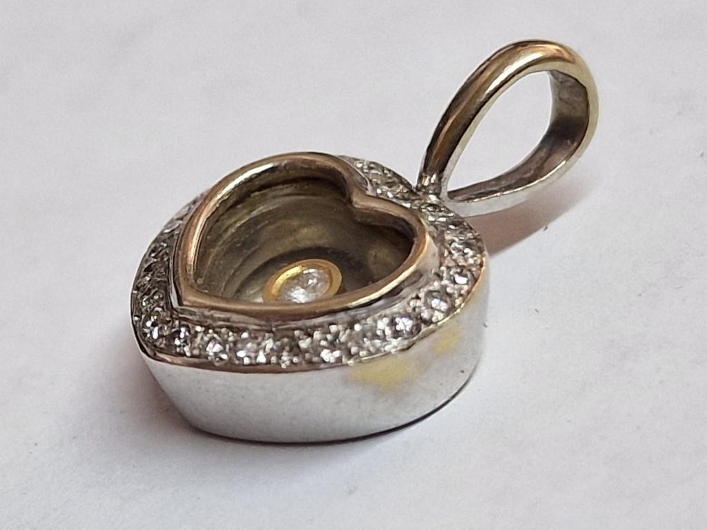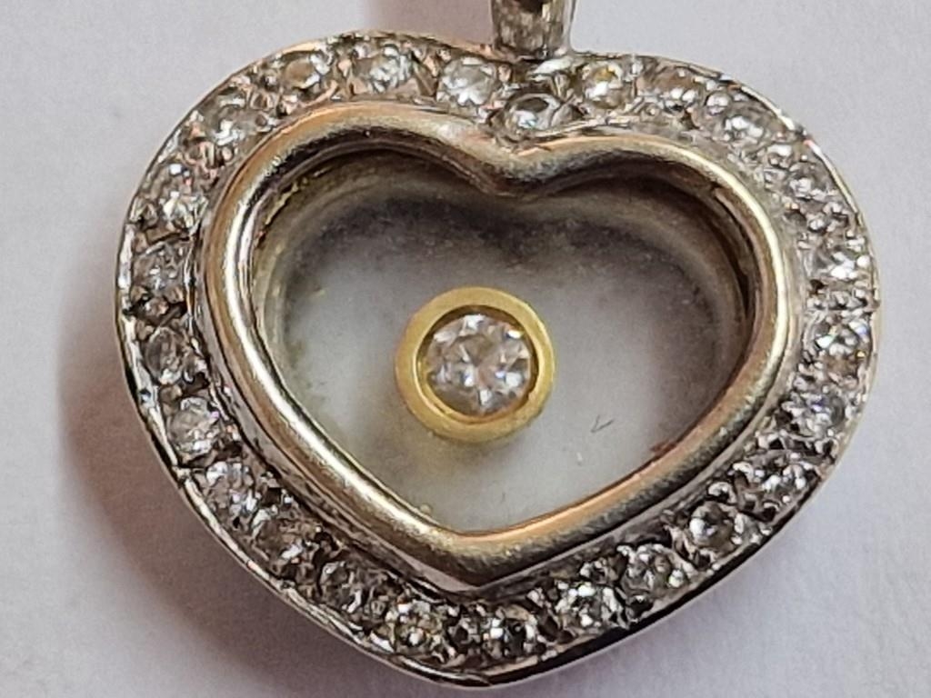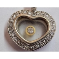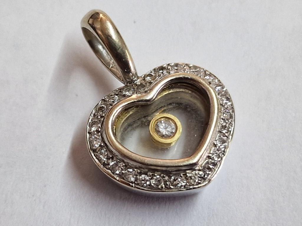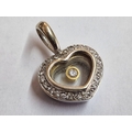 18ct White Heart Heart Shaped Pendant with 25 x Round Cut Diamonds Surrounding and Floating Diamond in Centre, (Approx. W: 14mm, 4.0g)