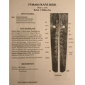 A superior quality gendaito, just over 26.5 inches long (67.4 cms nagasa), with fine itame jihada, sanbonsugi hamon and komaru boshi. See pages 41 to 42 of Modern Japanese Sword Smiths by Slough which rates Kanehide at 2 Million Yen. The nakago is signed Kanehide and is dated