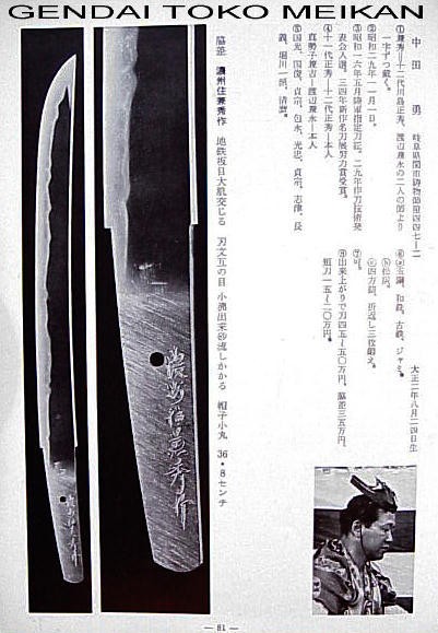 as recorded in the extract from the Nihinoto Meikan pictured below. The blade is mounted in Type