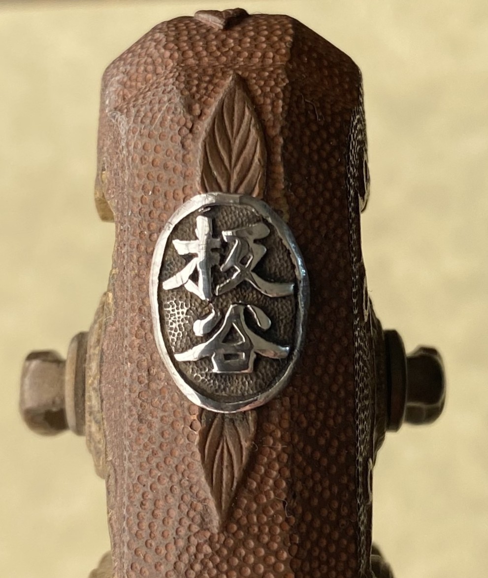 98 shingunto koshirae with the kabutogane bearing a silver mon with the surname “Itaya”*. NOTE! A LCDR Shigeru Itaya was the flight leader of the first wave of Zero aircraft that attacked Pearl Harbour on 7th December 1941. An IJN pilot might have been expected to carry a kaigunto but it seems there were no specific regulations. See https://www.militaria.co.za/nmb/topic/29331-pilot-