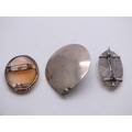 VINTAGE BROOCHES, PENDANTS INCLUDING REAL SHELL CAMEO BROOCH, STERLING SILVER STONE BROOCH