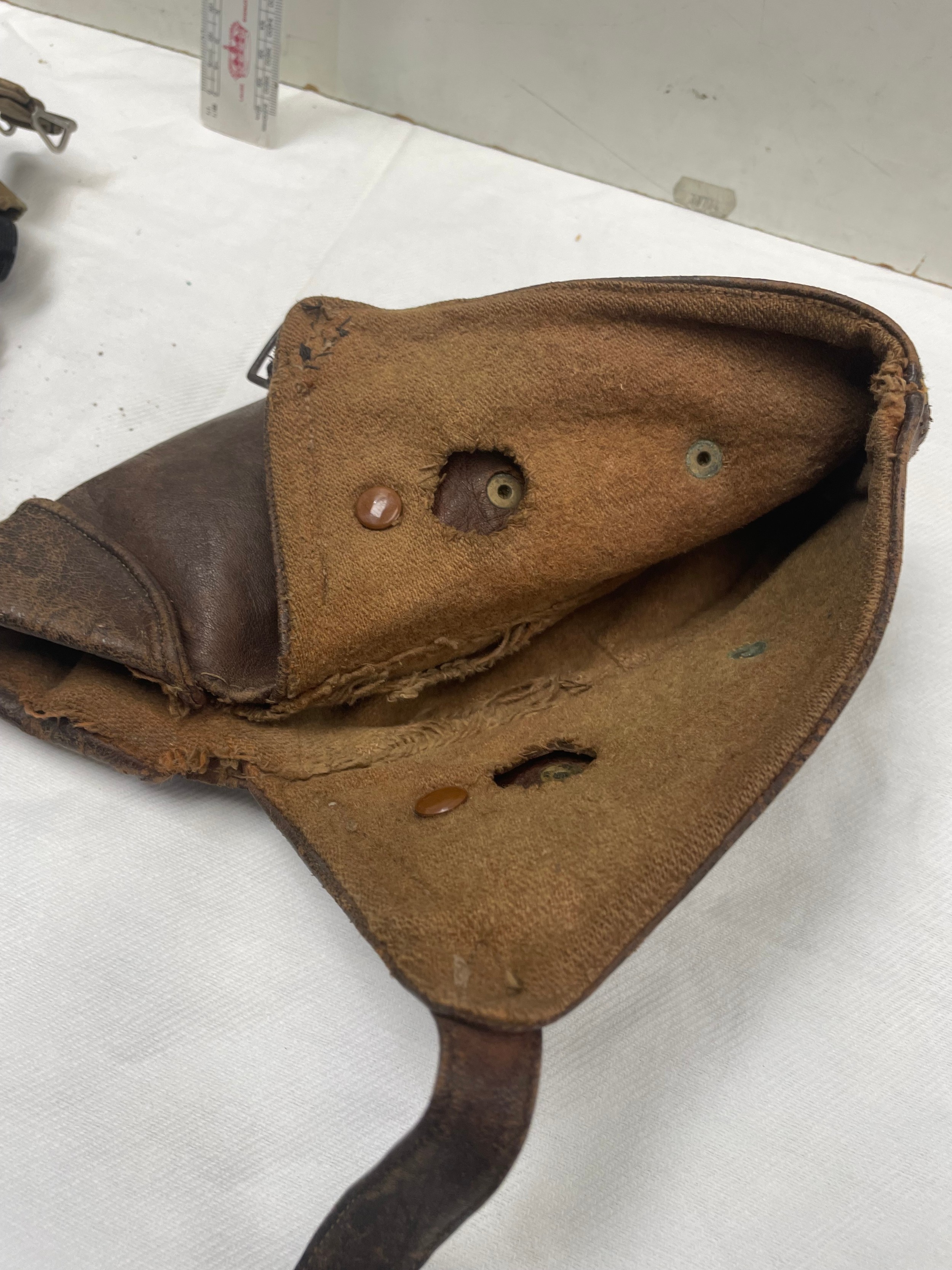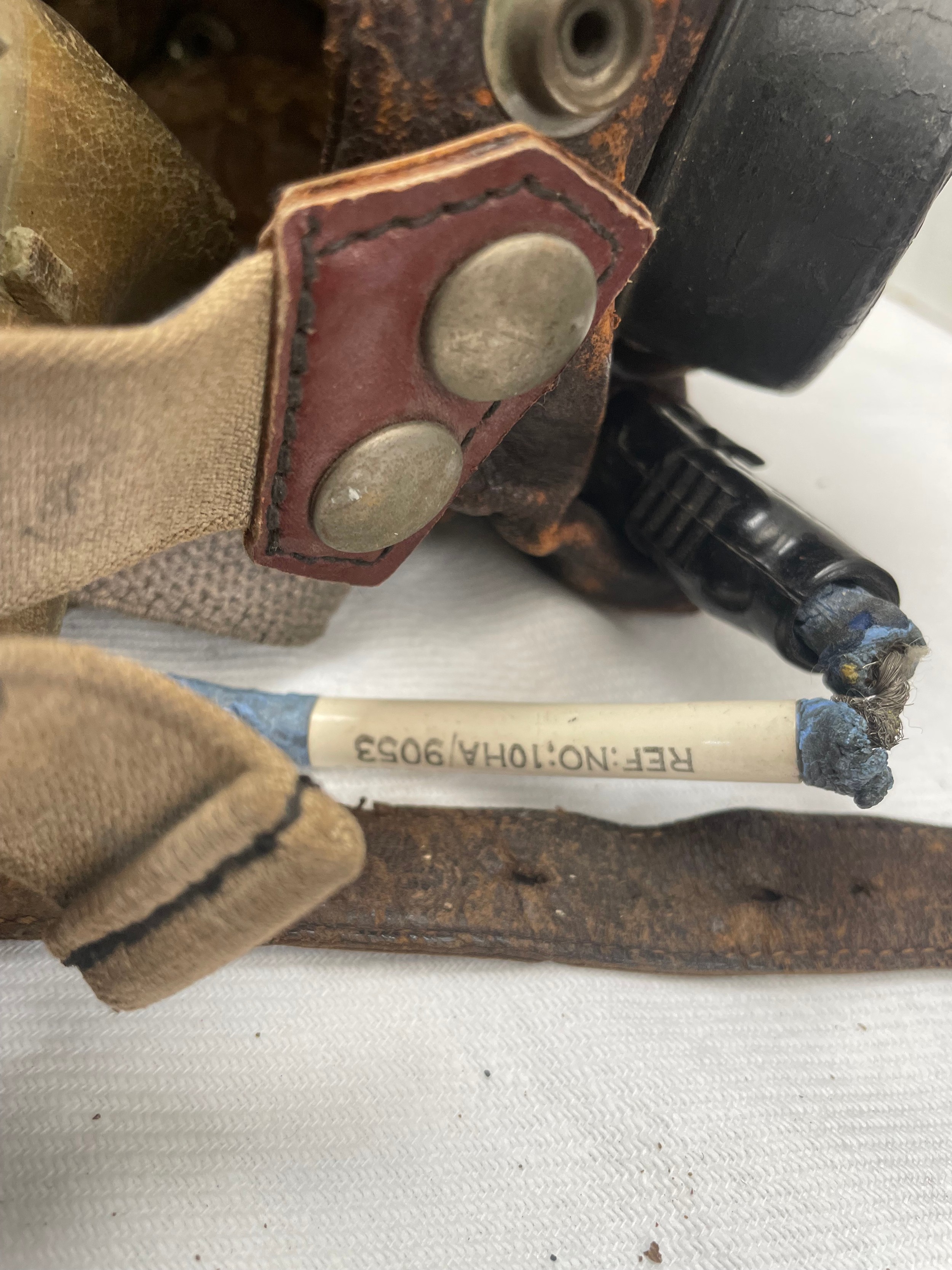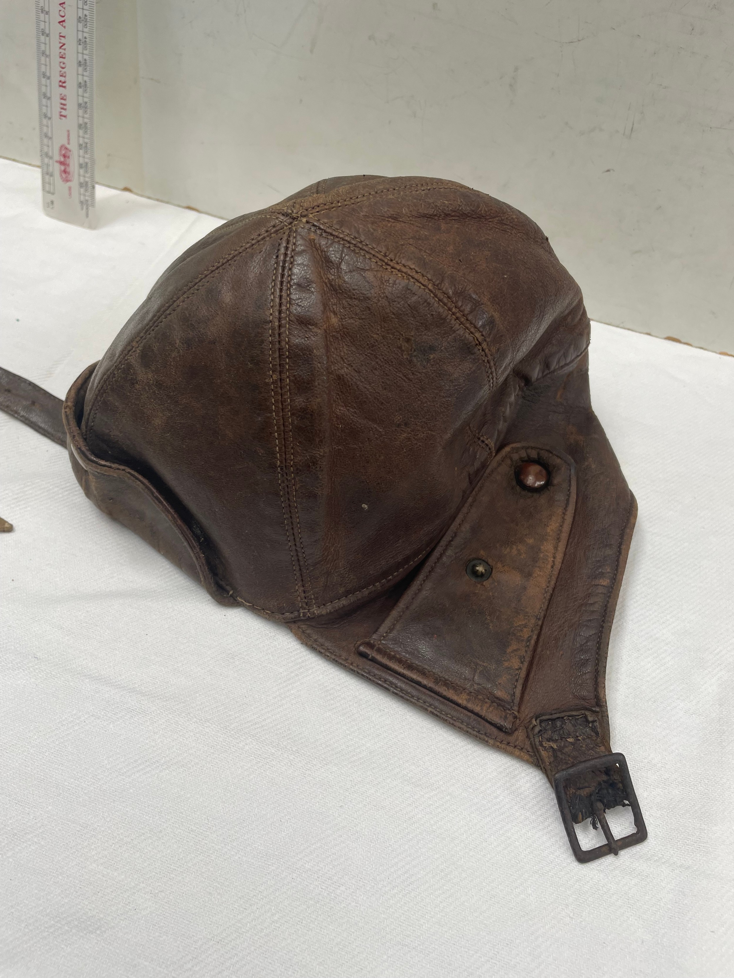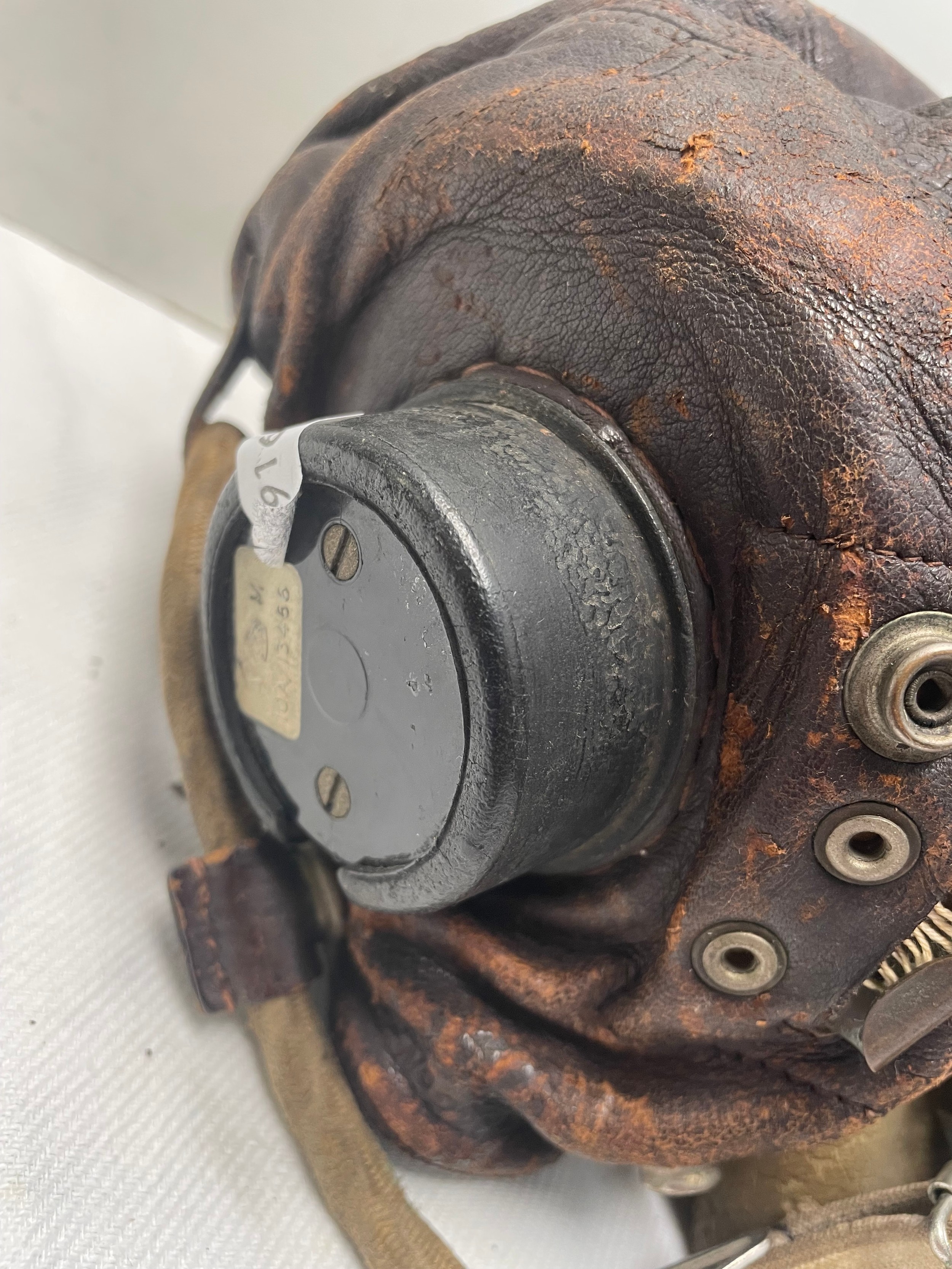 An RAF type C late pattern flying helmet together with a type H oxygen mask having Korean War-era issue marks and wiring loom; a pre-WW2 wool lined leather leather flying / driving helmet (2)