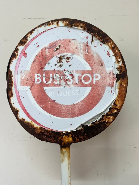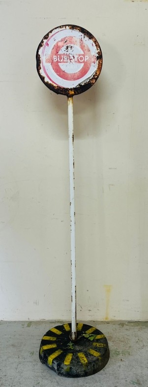 A vintage metal London Bus Stop sign H180cm