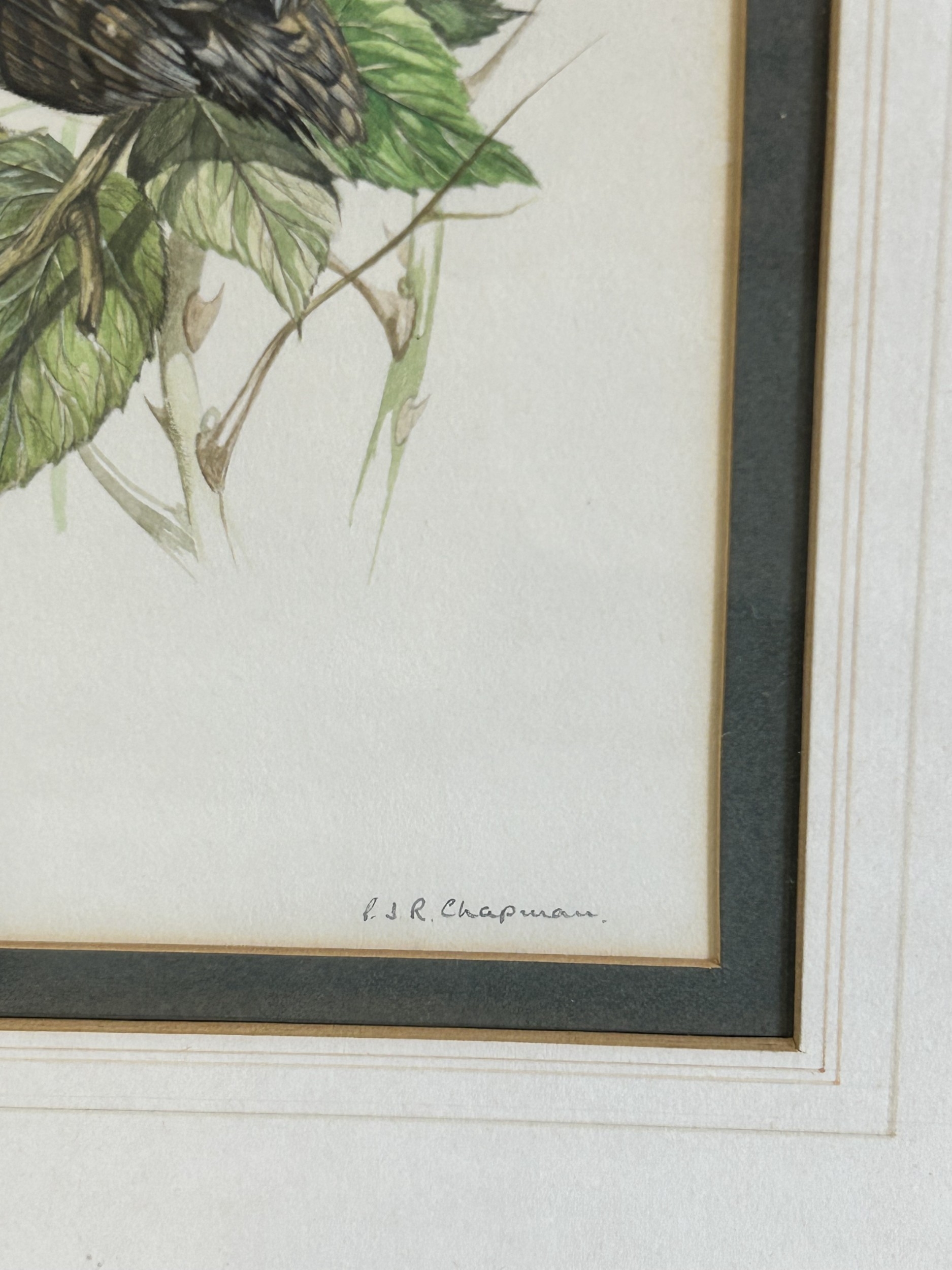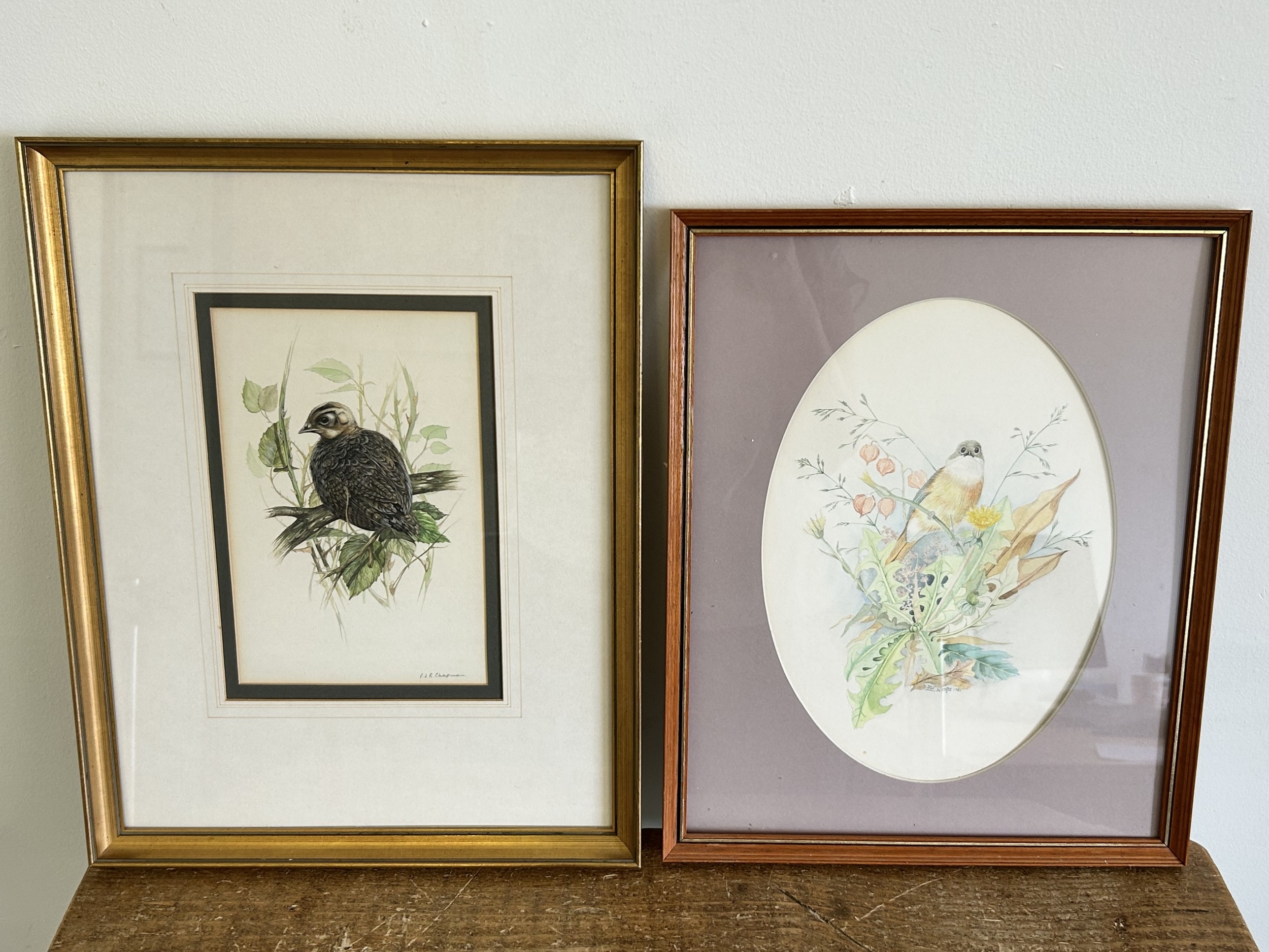 Two framed and glazed watercolour of birds, one signed P J R Chapman, 5 1/2" x 8 3/4", the other B E Ward 1981