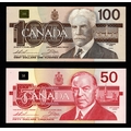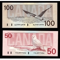 Canada (2), 100 Dollars dated 1988, signed Thiessen & Crow, serial AJY 9916978 (BNB B362a, Pick99a) EF+, 50 Dollars dated 1988, signed Bonin & Thiessen, serial FHL 8977456 (BNB B361b, Pick98b) Uncirculated
