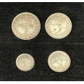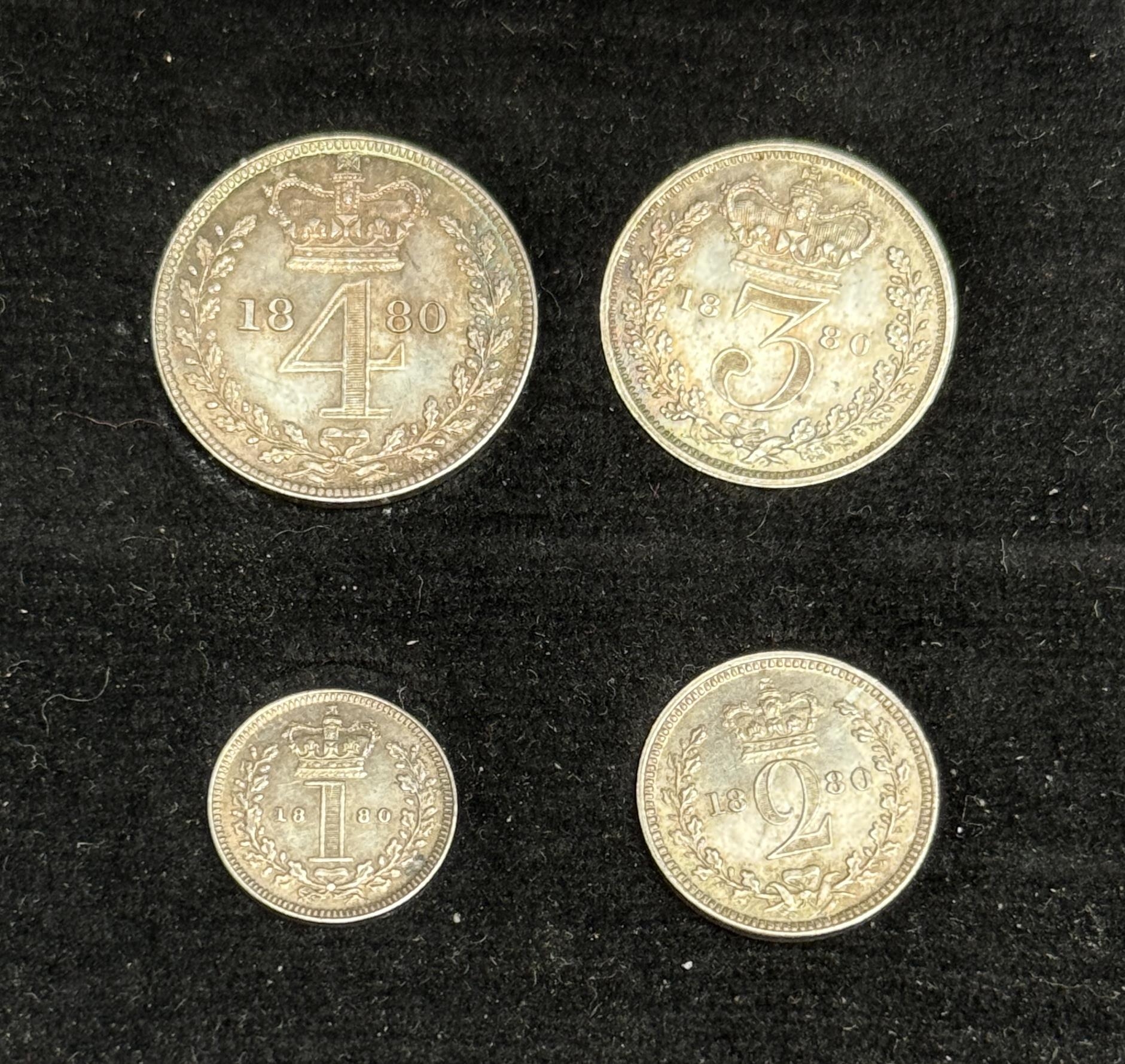 UK QV 1880 complete x4 coin silver Maundy set, comprising 1d, 2d, 3d, 4d, in good condition