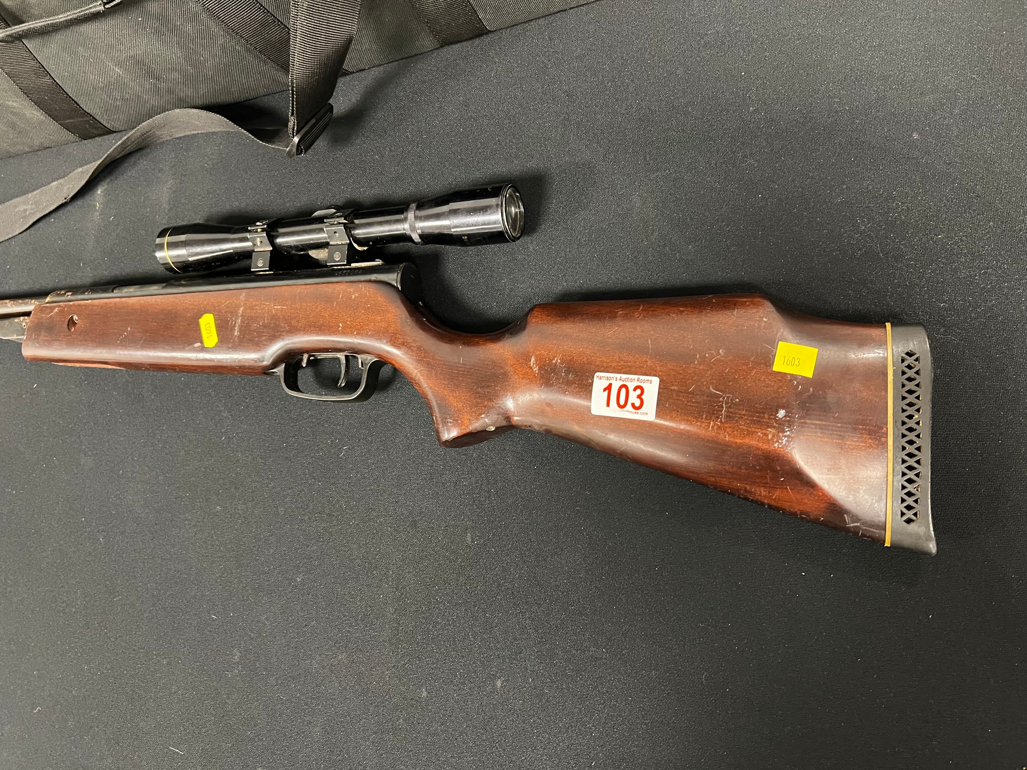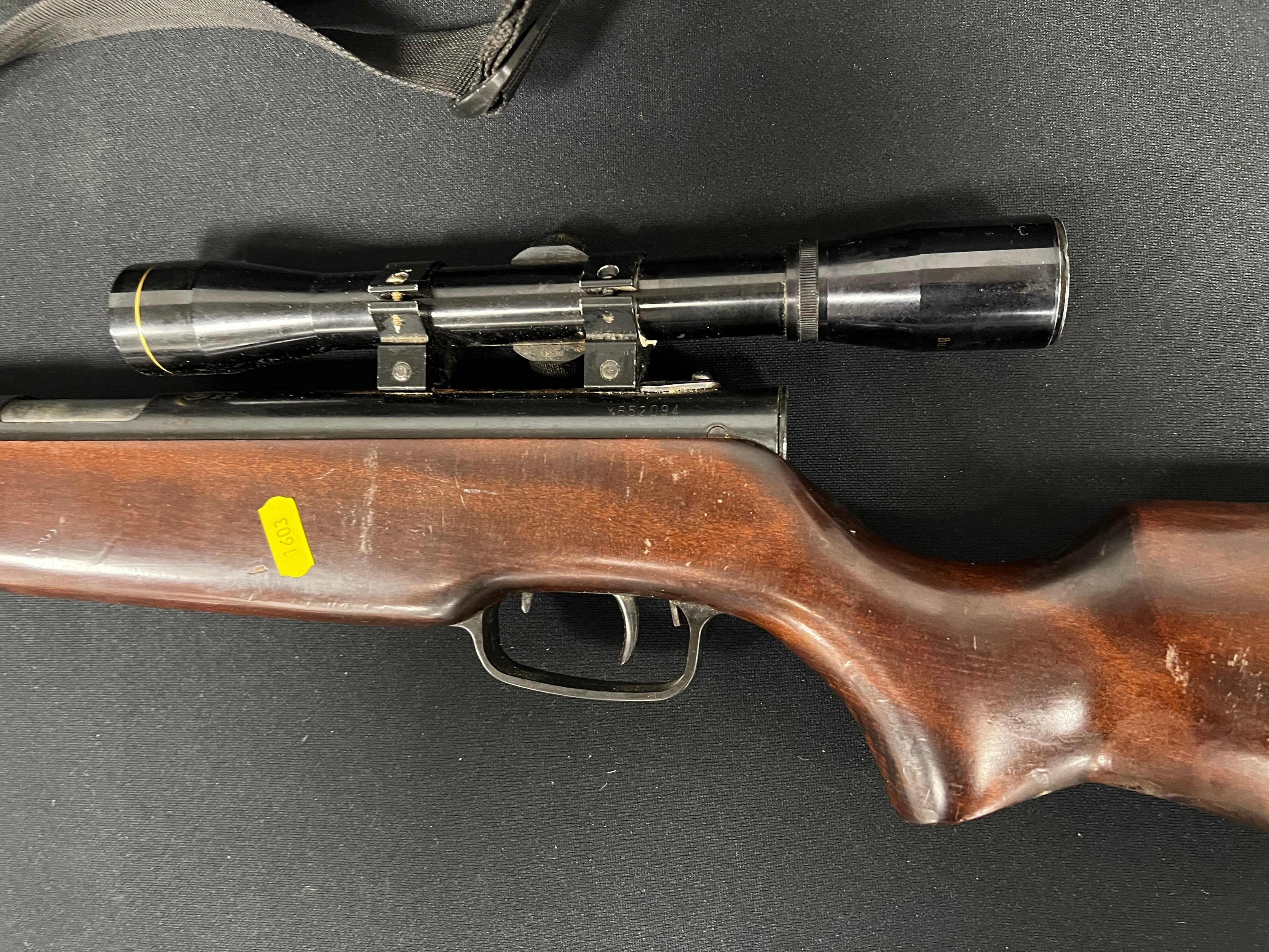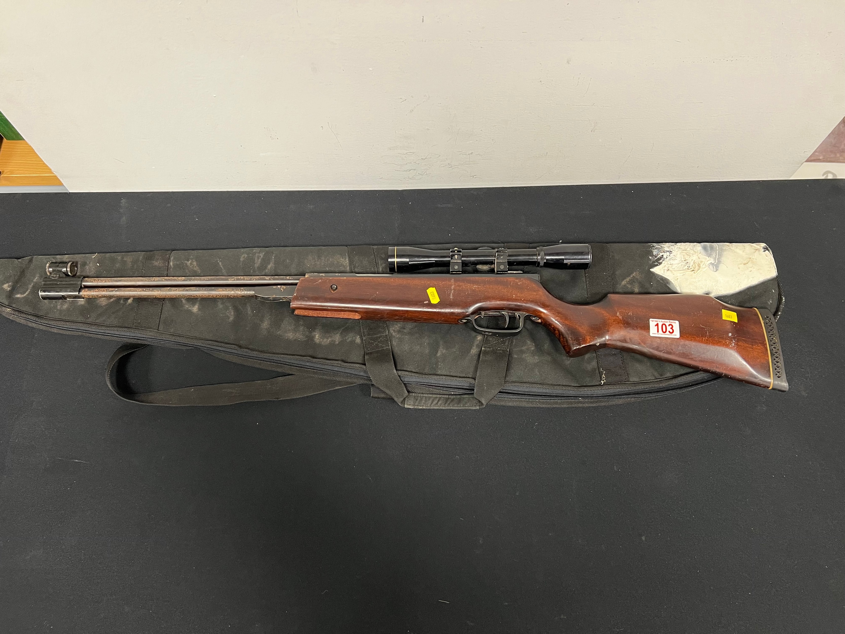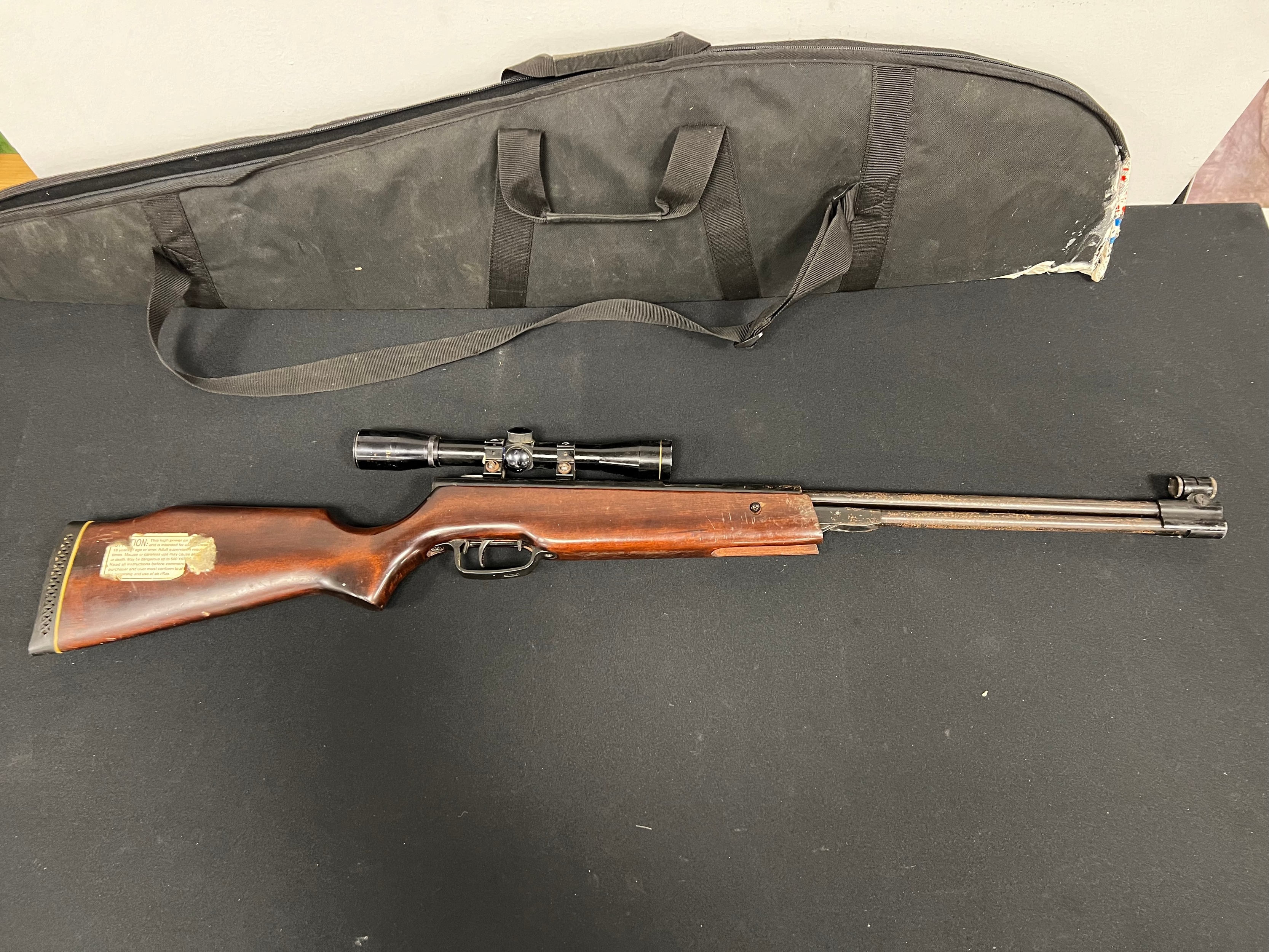 Vintage air rifle in case with scope