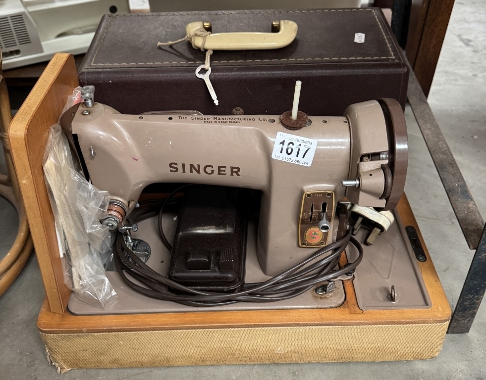 A cased Singer sewing machine (with treadle)