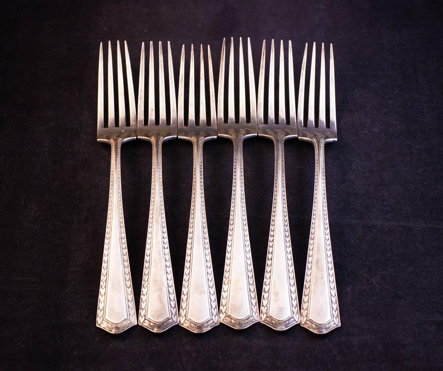 6 AMERICAN SILVER TABLE FORKS 284G