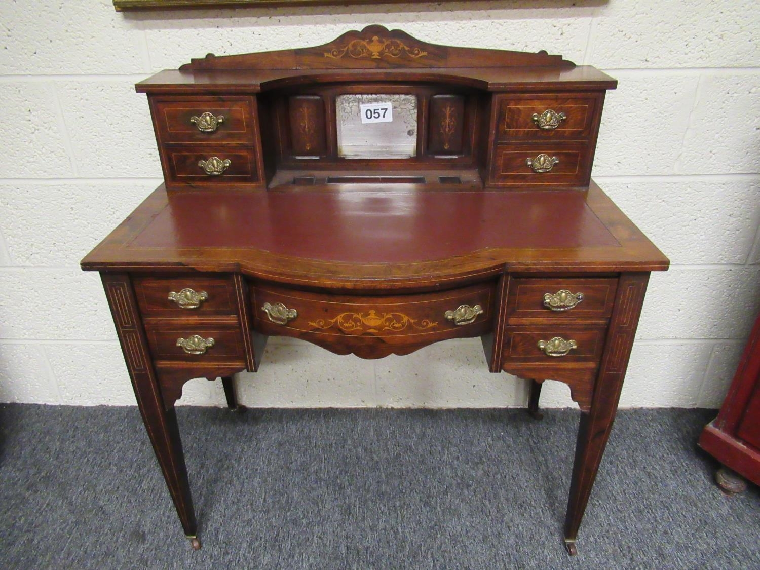 Victorian Rosewood inlaid ladies writing desk with 9 drawers. H:100cm W:90cm, D:47cm.