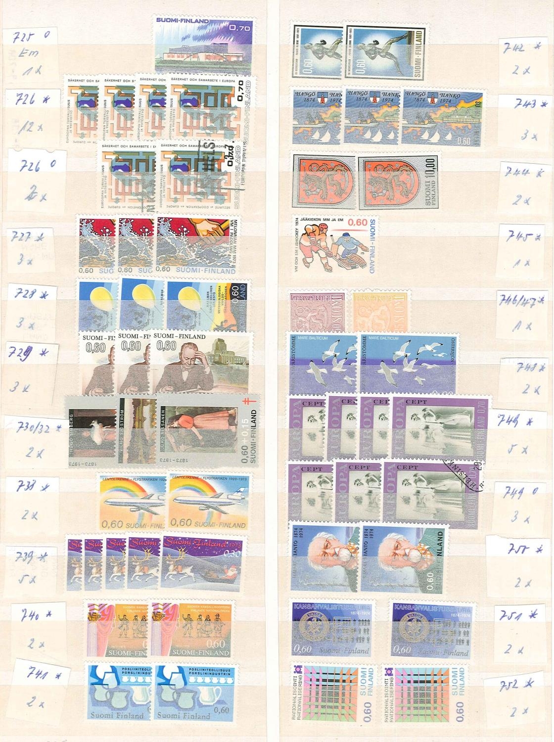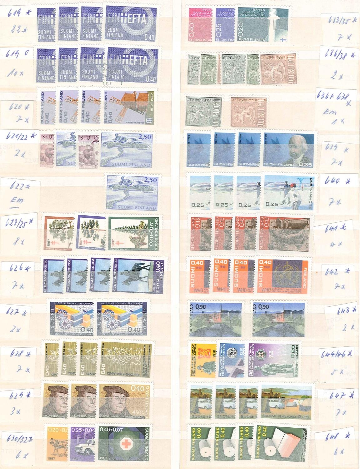 Finland; 1946-83 stock on stockleaves u.m. and used, with duplication up to x5, many sets plus some singles, and with several better defin. odds cat.£25+ Cat.£1,639. (600+)