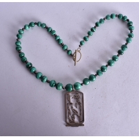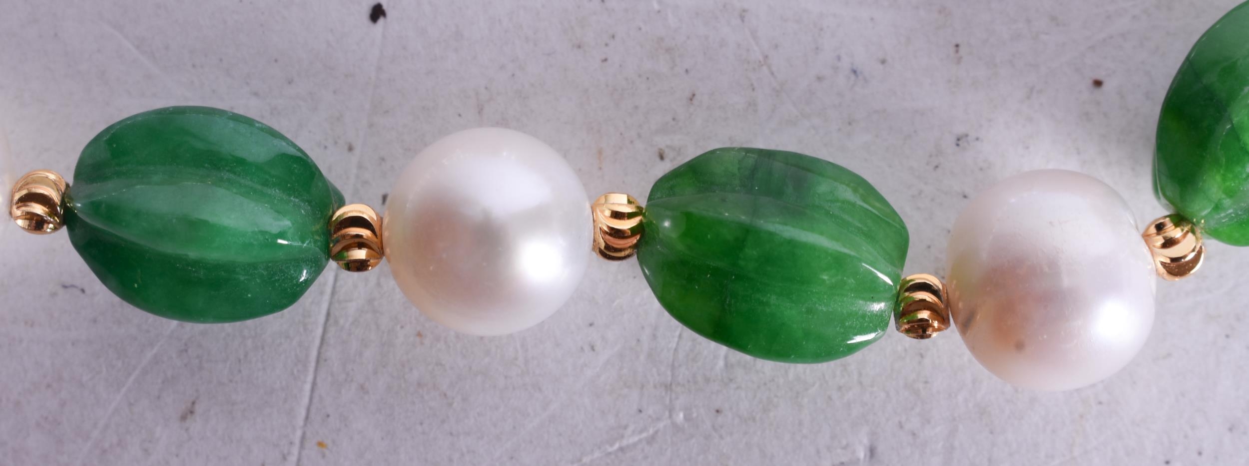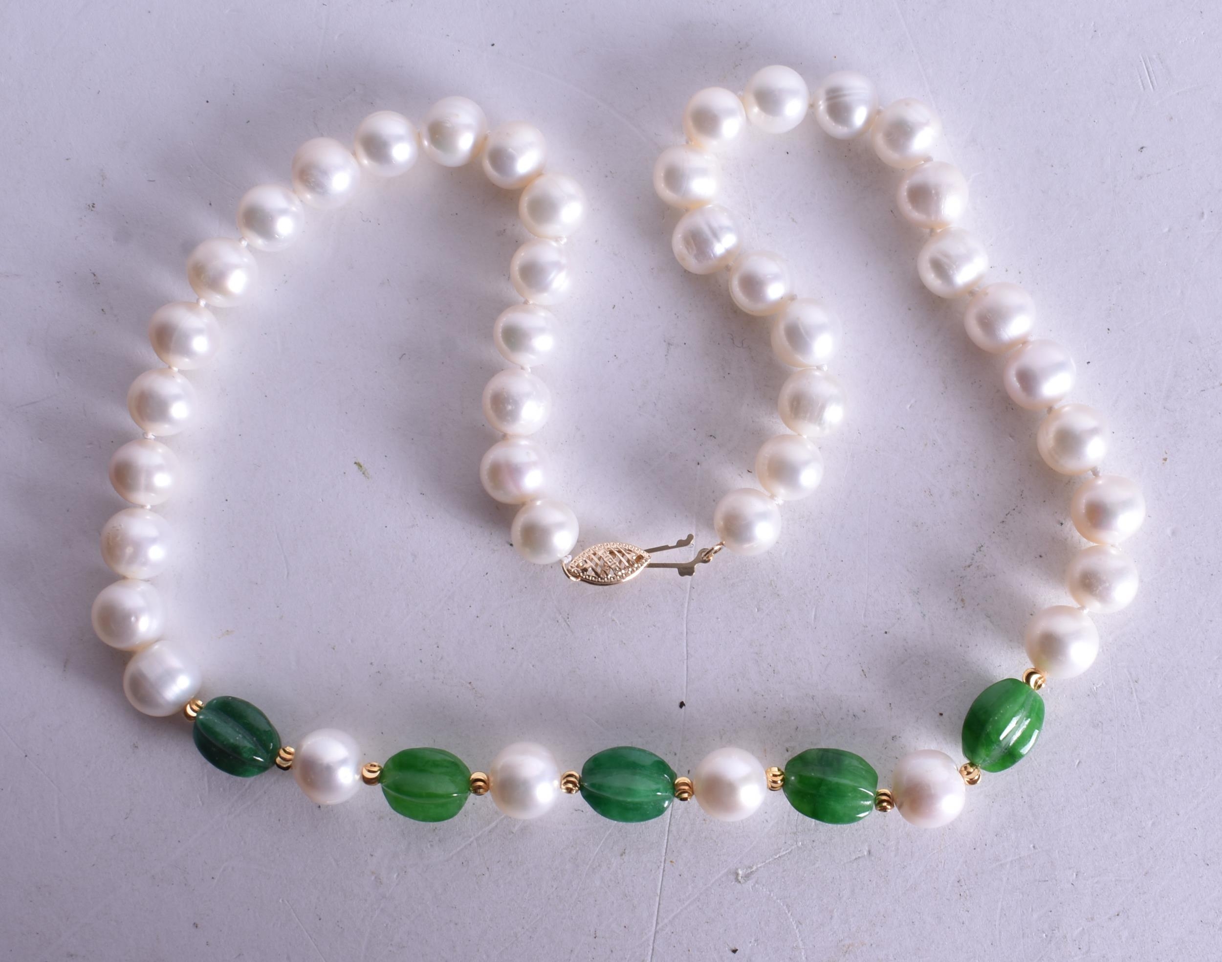 A Hardstone Bead Necklace with a 14 Carat Gold Clasp. Stamped 14K, Bead Size 9mm, 46cm long, weight 49.8g