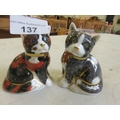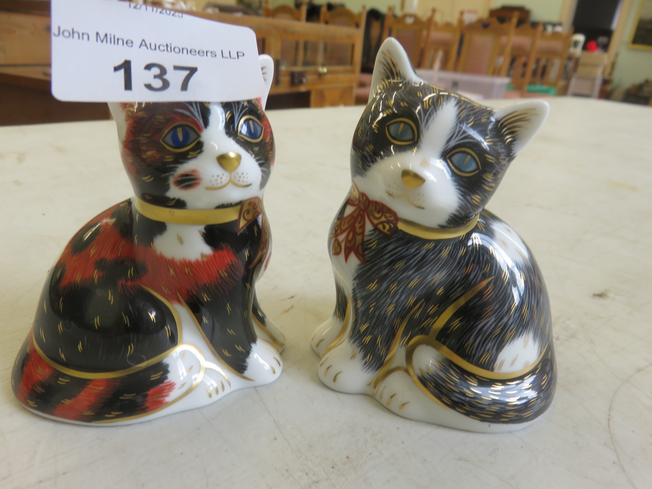Two Crown Derby Cats - Calico Kitten and Black and White Kitten
