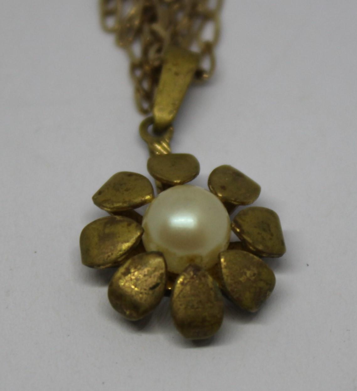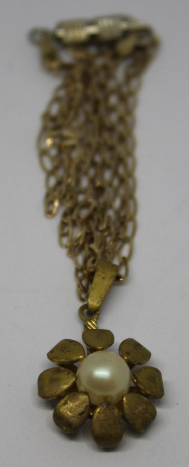 9ct GOLD CHAIN (3g) WITH PEARL FLOWER PENDANT